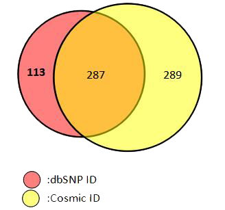 圖4. 突變細(xì)分種類的位點(diǎn)數(shù)(經(jīng)過驗(yàn)證的位點(diǎn)) 7. 位點(diǎn)多,超過680個(gè)位點(diǎn),全部有對(duì)應(yīng)的Cosmic ID或/和dbSNP ID注釋;