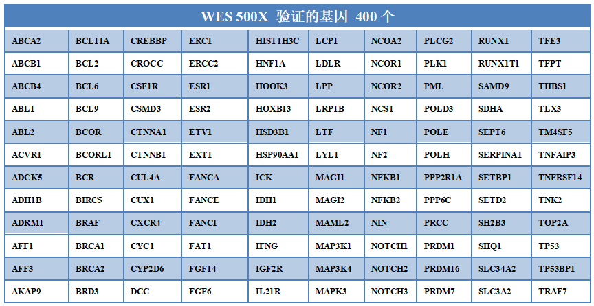 表4. 500X WES驗(yàn)證的400個(gè)基因信息 9. 基因覆蓋科學(xué),超過400個(gè)基因,覆蓋國內(nèi)外多個(gè)知名panel的設(shè)計(jì);