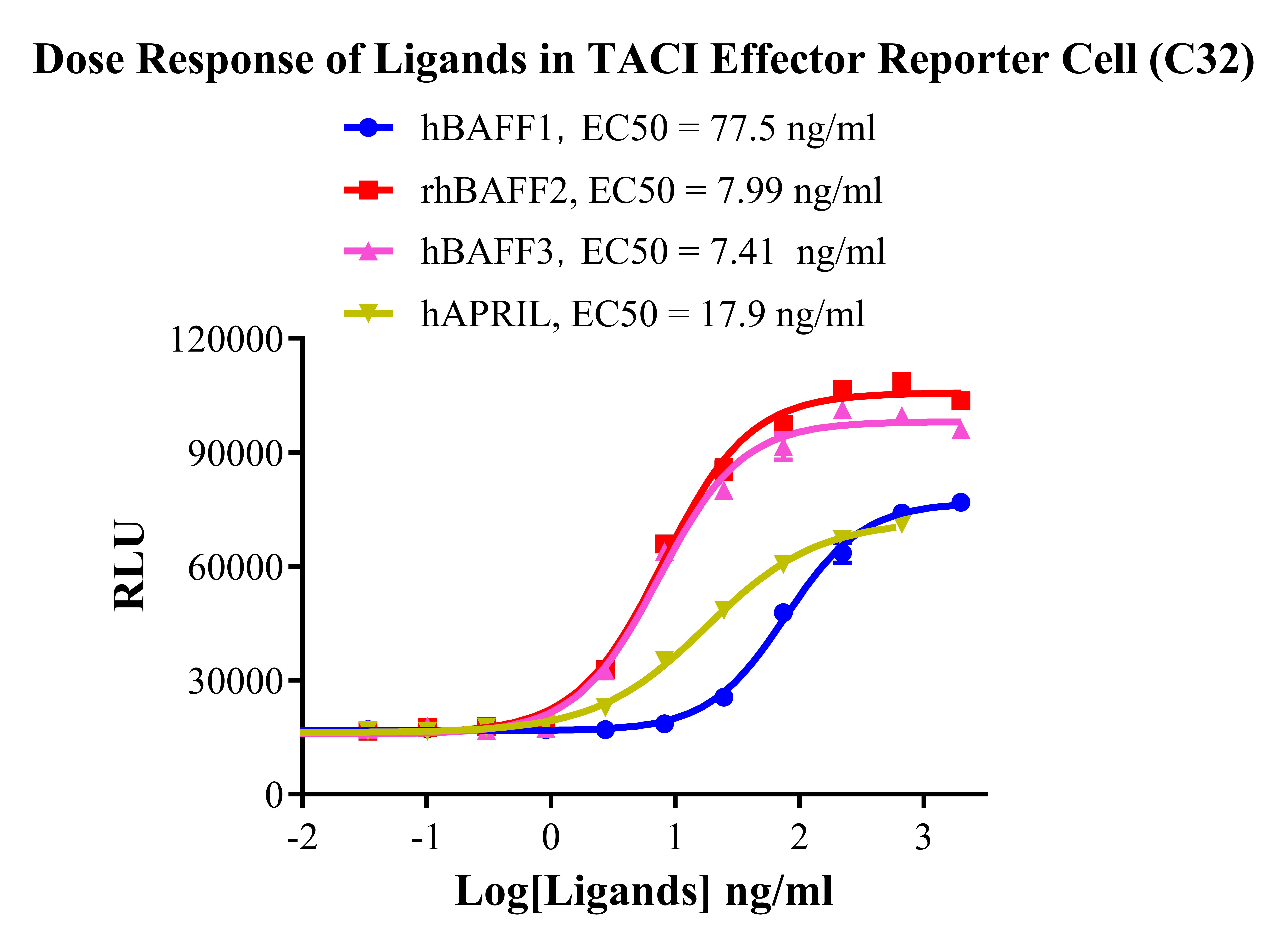 Figure 3. Dose response of Ligands in TACI Effector Reporter Cell(C32).