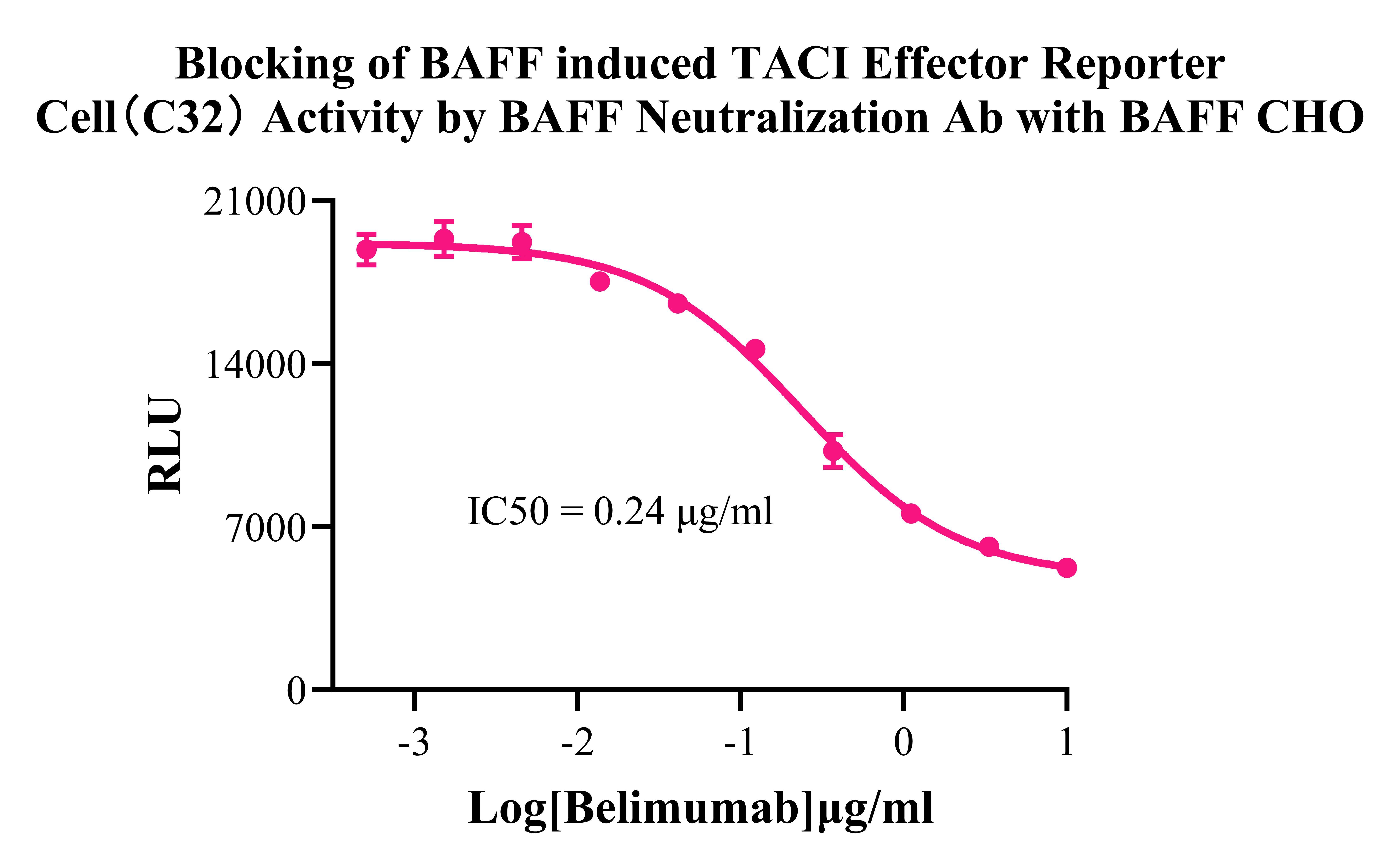 Figure 5. Blocking of BAFF induced TACI Effector Reporter Cell(C32) Activity by BAFF Neutralization Ab with BAFF CHO.