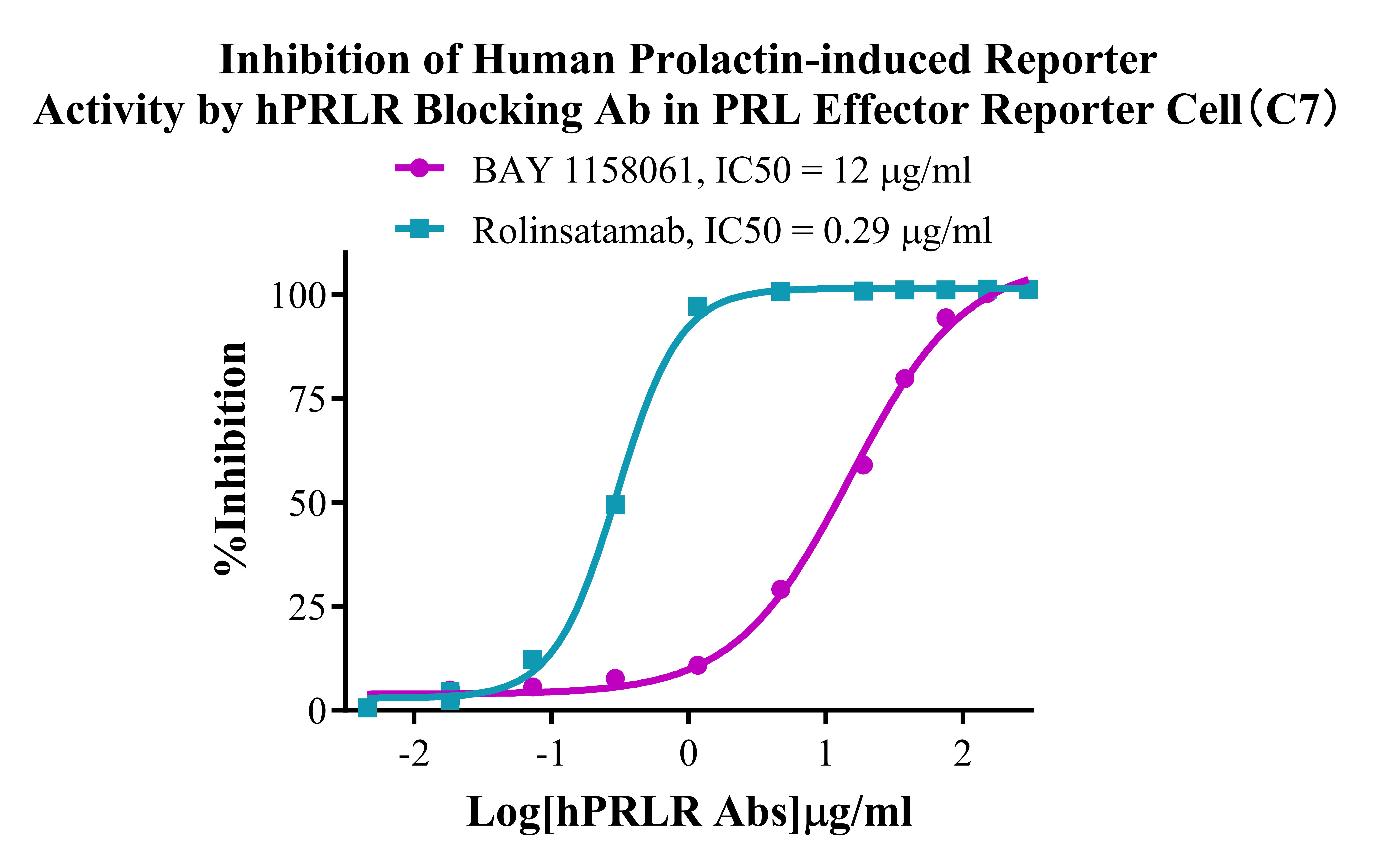 Figure 4. Inhibition of Human Prolactin-induced Reporter Activity by hPRLR Blocking Ab in PRL Effector Reporter Cell(C7).