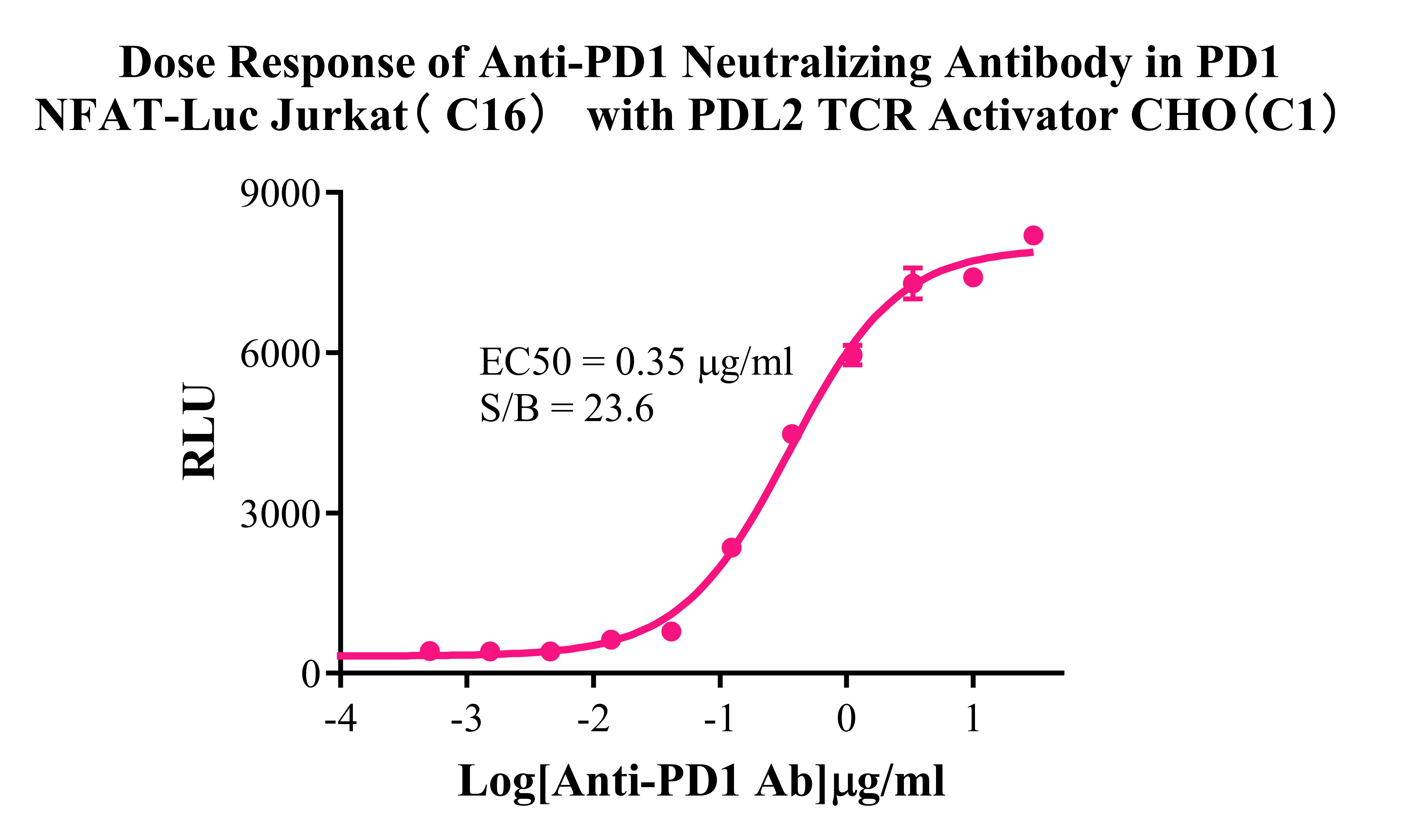Figure 3. Dose Responese of anti-PD1 neutralizing antibody in PD1 NFAT-Luc Jurkat (C16) with PDL2 TCR Activator CHO(C1).