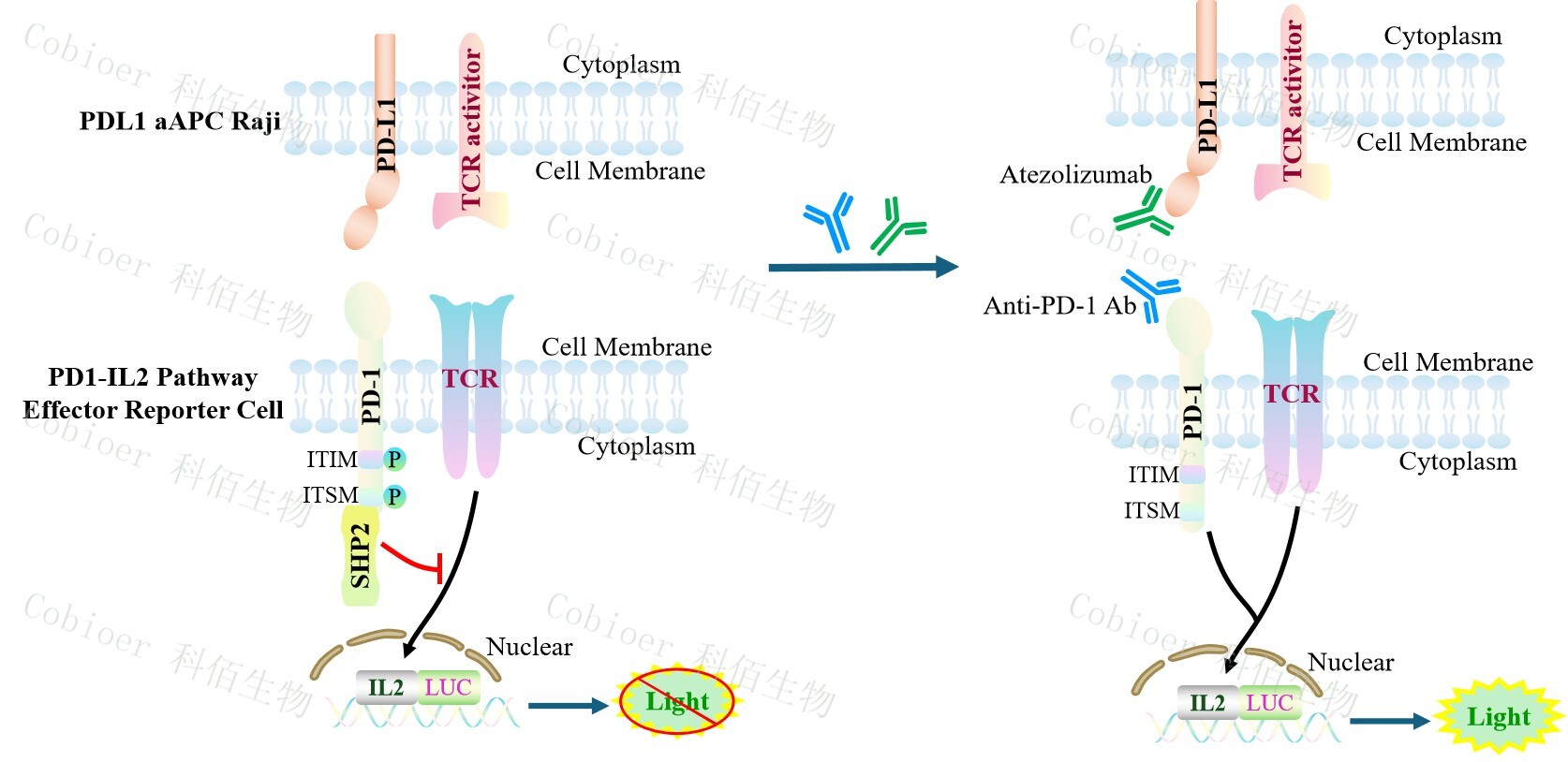 PDL1 aAPC Raji 作為 PD1-IL2 Pathway Effector Reporter Cell 的靶細胞,藥靶模型很好 的模擬了體內(nèi) PD1&PDL1 的信號轉(zhuǎn)導過程,原理見下圖所示。![]() Figure 1. PDL1 aAPC Raji 模型原理圖