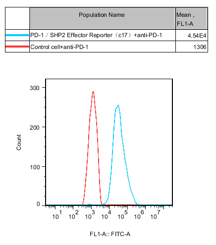 Figure 2. Recombinant PD1/SHP2 Reporter Cell constitutively expressing PD1.