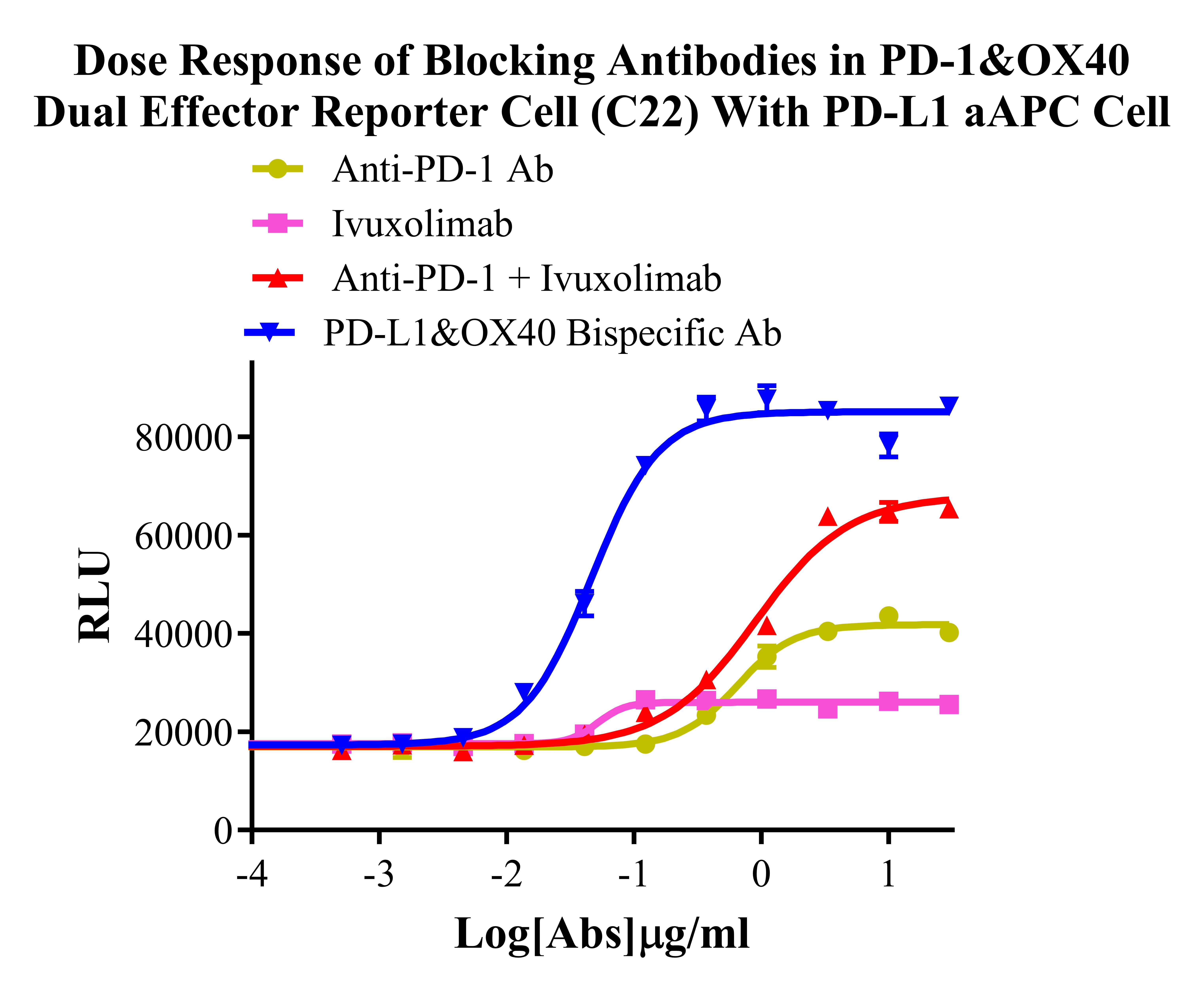 Figure 3. Dose Response of Blocking Antibodies in PD-1&OX40 Dual Effector Reporter Cell(C22) with PD-L1 aAPC Cell.