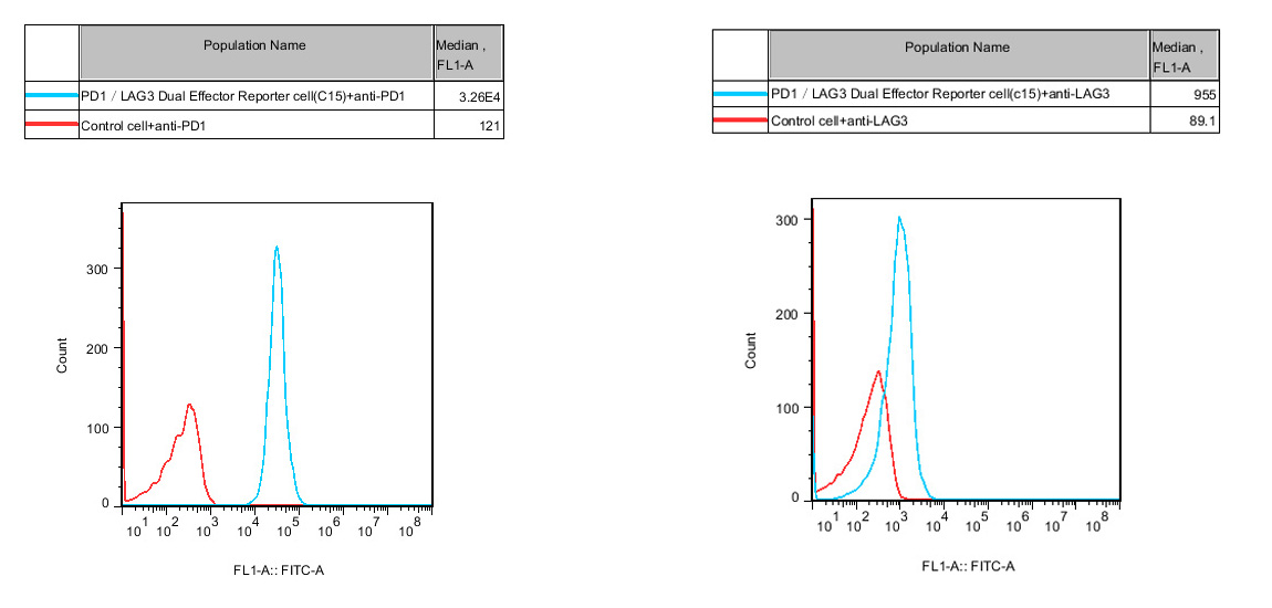 Figure 2. PD-1/LAG3 Dual Effector Reporter Cell constitutively expressing PD1 and LAG3.