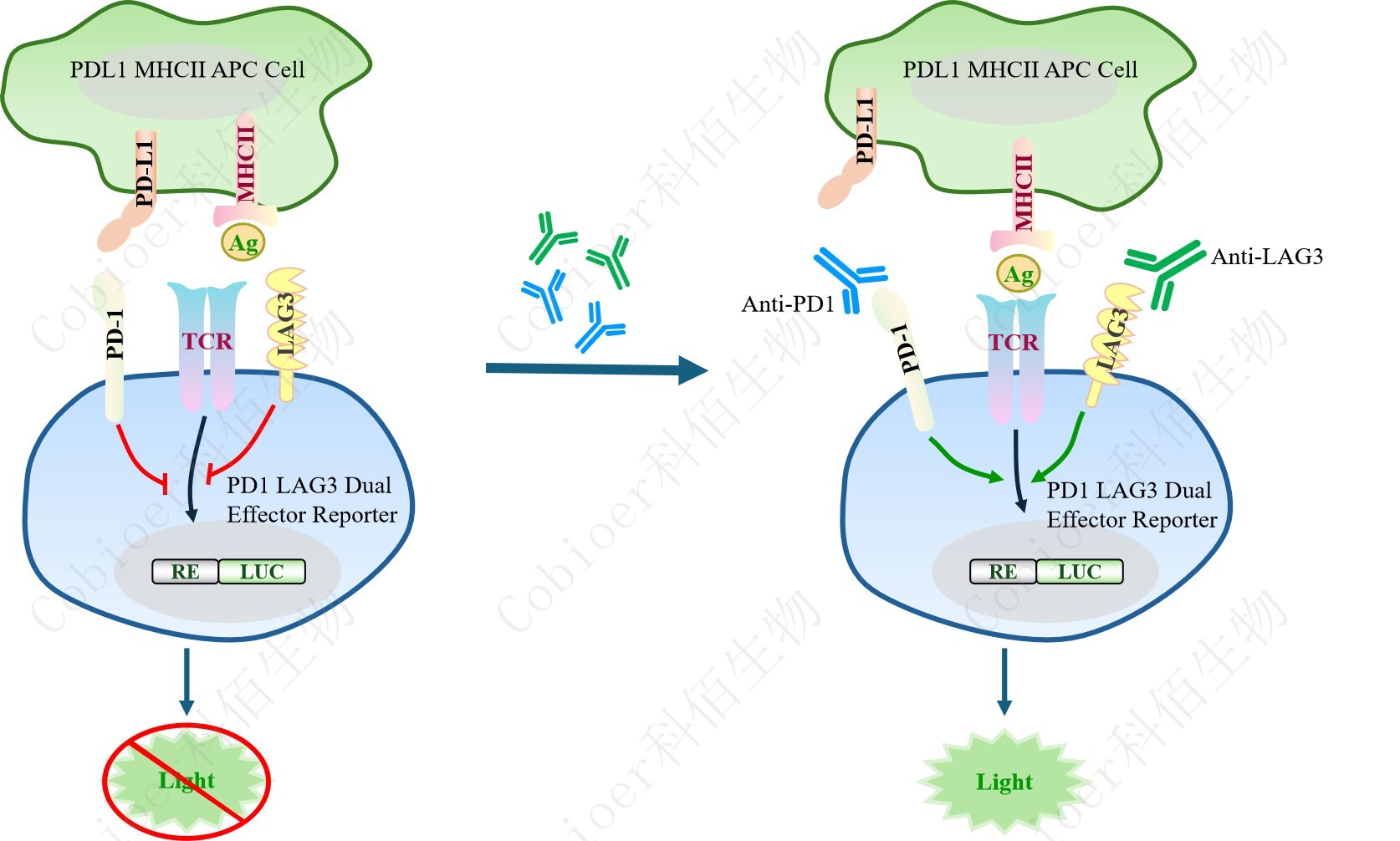 Figure 1. PD1 LAG3 Dual Effector Reporter Cell 細(xì)胞模型原理圖