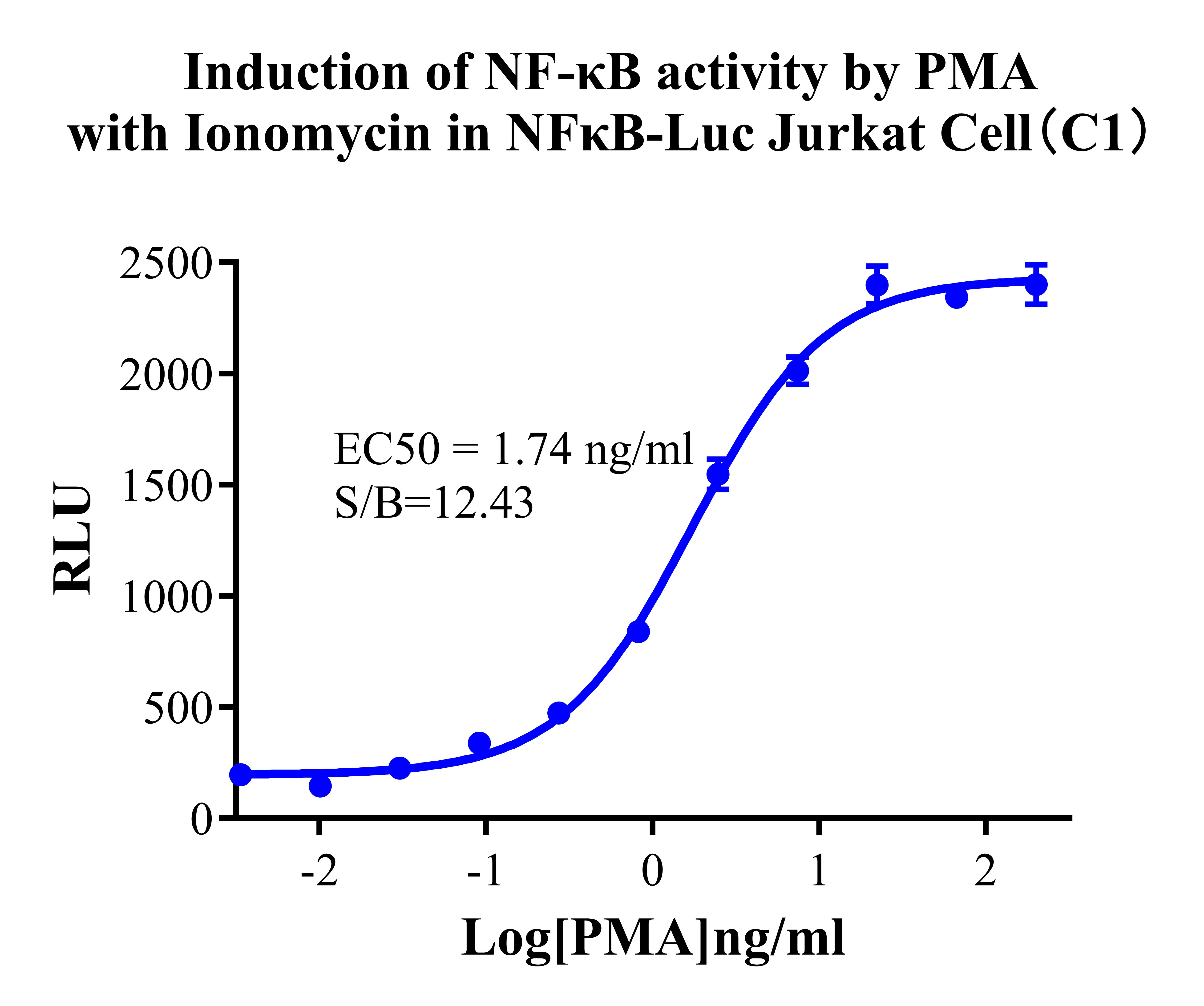 Figure 2. Detect Luciferase assay by Ultra Luciferase Detection Kit CBPH0001(we strongly suggest to purchase from Cobioer).Induction of NF-κB activity by PMA with Ionomycin in NFκB-Luc Jurkat Cell(C1). |