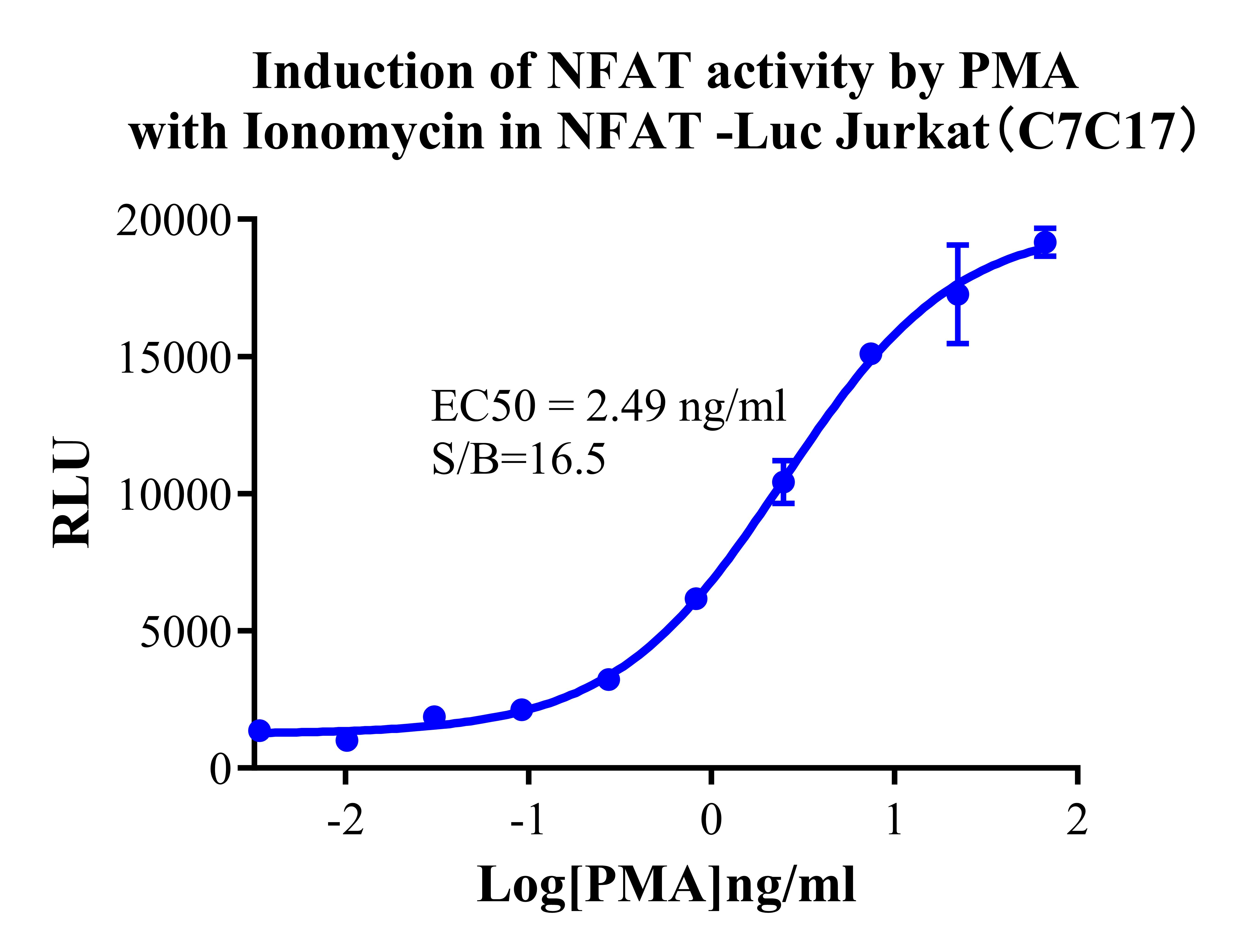Figure 2.Detect Luciferase assay by Ultra Luciferase Detection Kit CBPH0001(we strongly suggest to purchase from Cobioer). Induction of NFAT activity by PMA with Ionomycin in NFAT-Luc Jurkat(C7C17). |