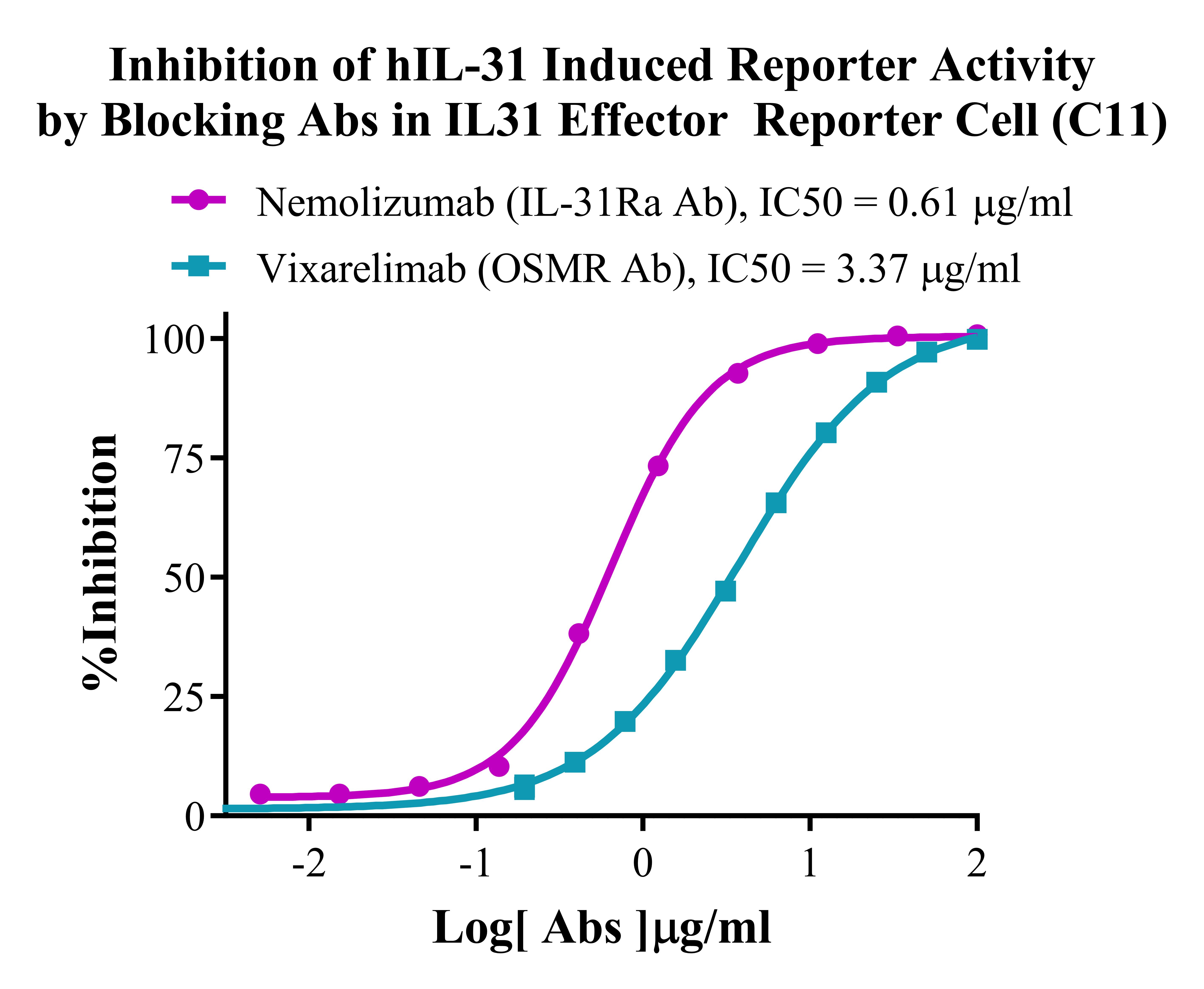 Figure 4. Inhibition of hIL-31 Induced Reporter Activity By Blocking Abs in IL31 Effector Reporter Cell (C11). |