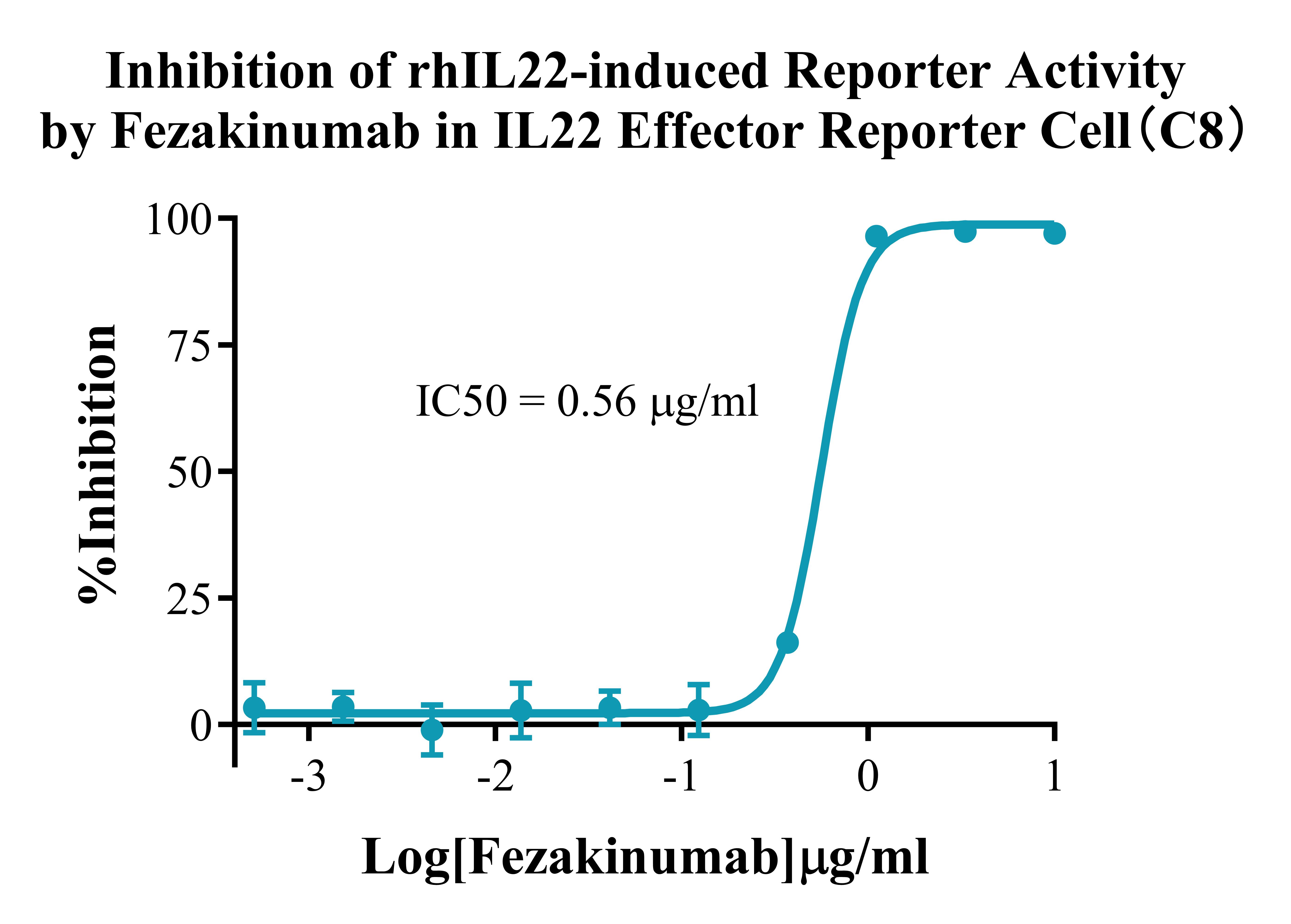 Figure 5.Inhibition of rhIL22-induced Reporter Activity by Fezakinumab in IL22 Effector Reporter Cell(C8). |