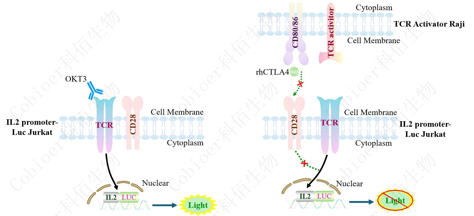 Figure 4. Detect Luciferase assay by Ultra Luciferase Detection Kit CBPH0001(we strongly suggest to purchase from Cobioer). Dose Response of Recombinant Human CTLA-4 Protein-Fc in IL2 Promoter-Luc Jurkat(C29) with TCR Activitor Raji (C1).