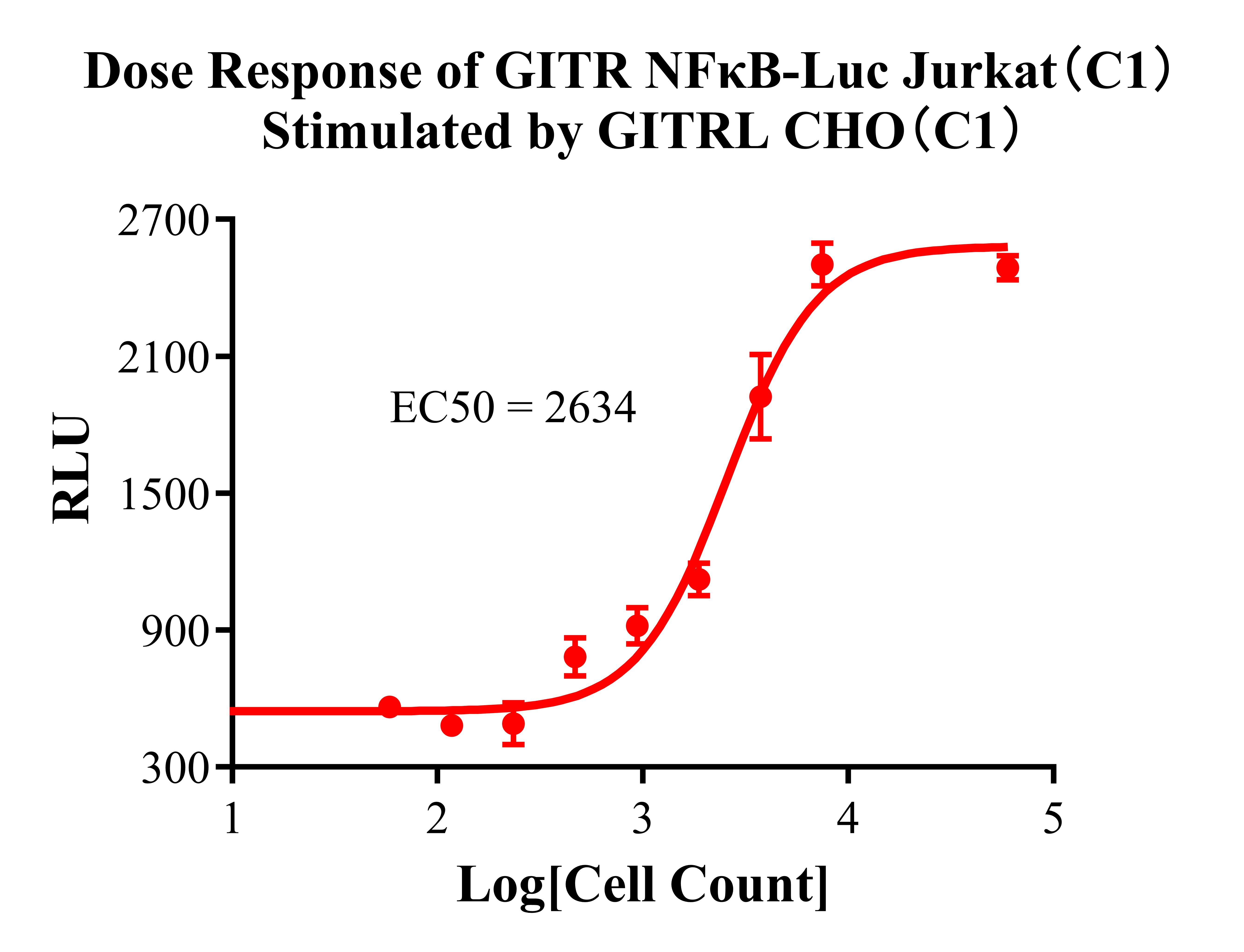 ![]() Figure 2. Dose Response of GITR NFκB-Luc Jurkat(C1) Stimulated by GITRL CHO (C1). |