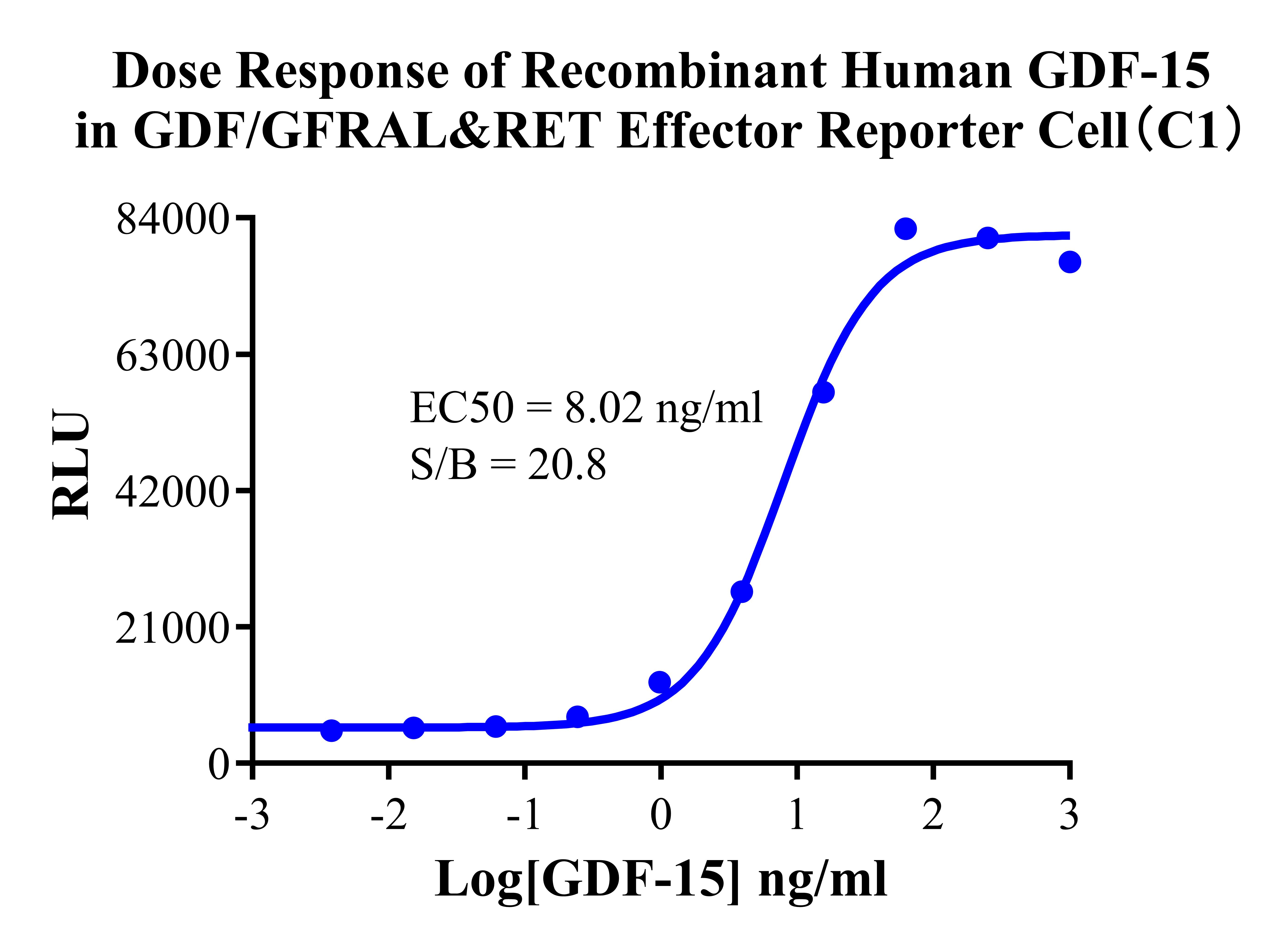 Figure 4.Dose Response of Recombinant Human GDF-15 in GDF/GFRAL&RET Effector Reporter Cells (C1). |