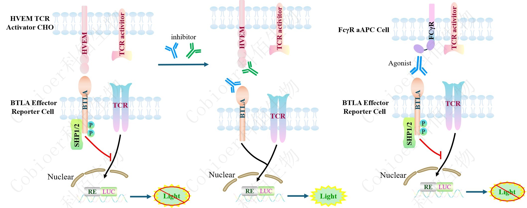 BTLA Effector Reporter Cell 報告基因藥靶模型很好的模擬了體內(nèi) BTLA 的信號轉(zhuǎn)導(dǎo)過 程,原理見下圖所示。![]() Figure 1. BTLA Effector Reporter Cell 模型原理圖 |