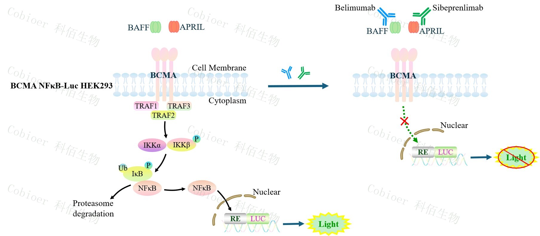Figure 1. BCMA NFκB-Luc HEK293 細胞模型原理圖