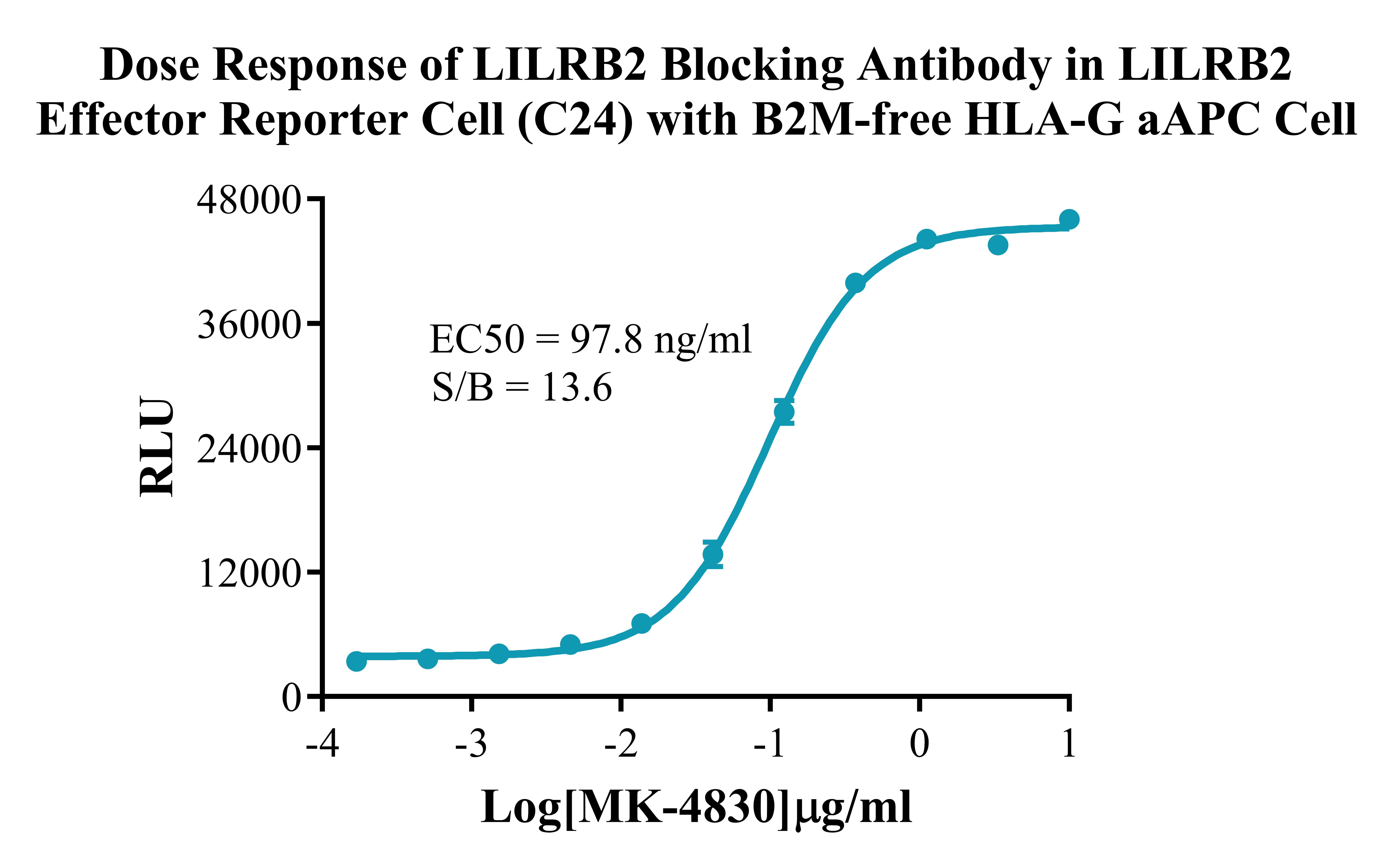 Figure 3. Dose Response of LILRB2 Blocking Antibody in LILRB2 Effector Reporter Cell (C24) with B2M-free HLA-G aAPC Cell. |