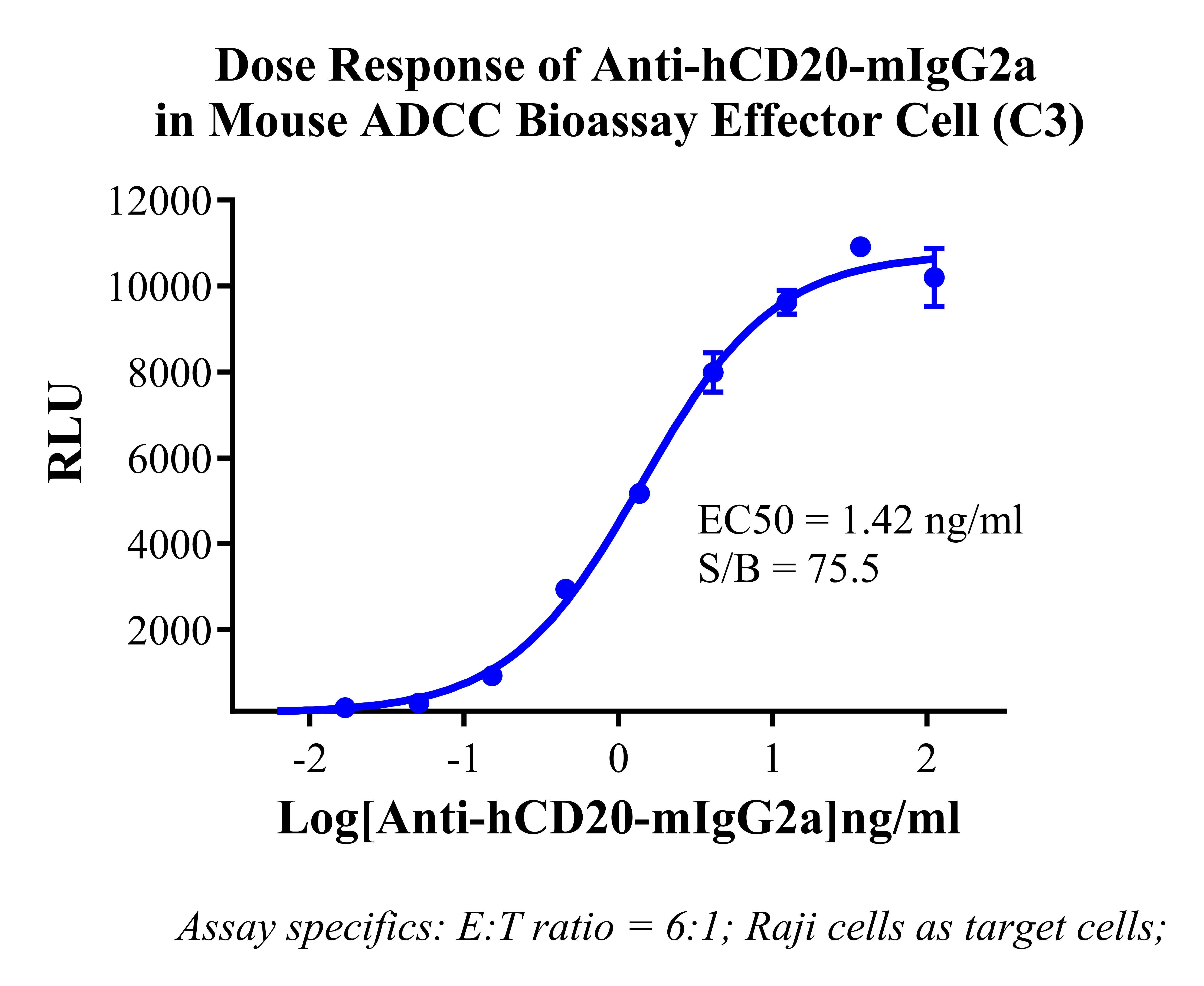 Figure 2. Dose response of Anti-hCD20-mIgG2a in Mouse ADCC Bioassay Effector Cell (C3).