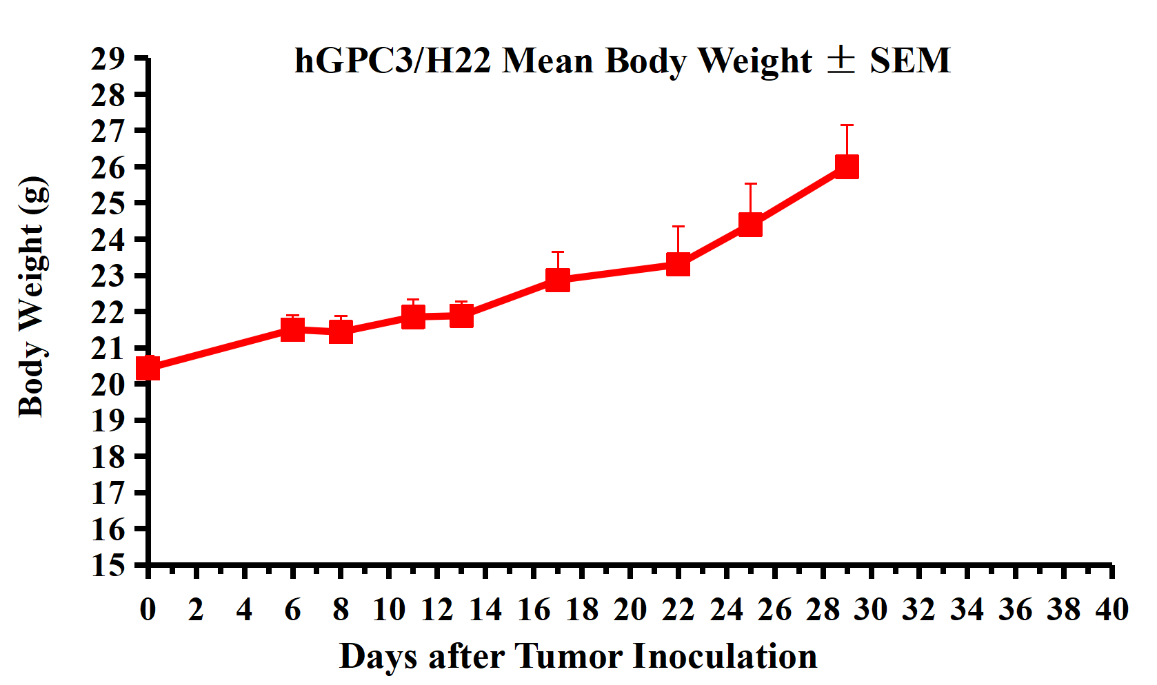 hGPC3/H22 Mean Body Weight ± SEM.
