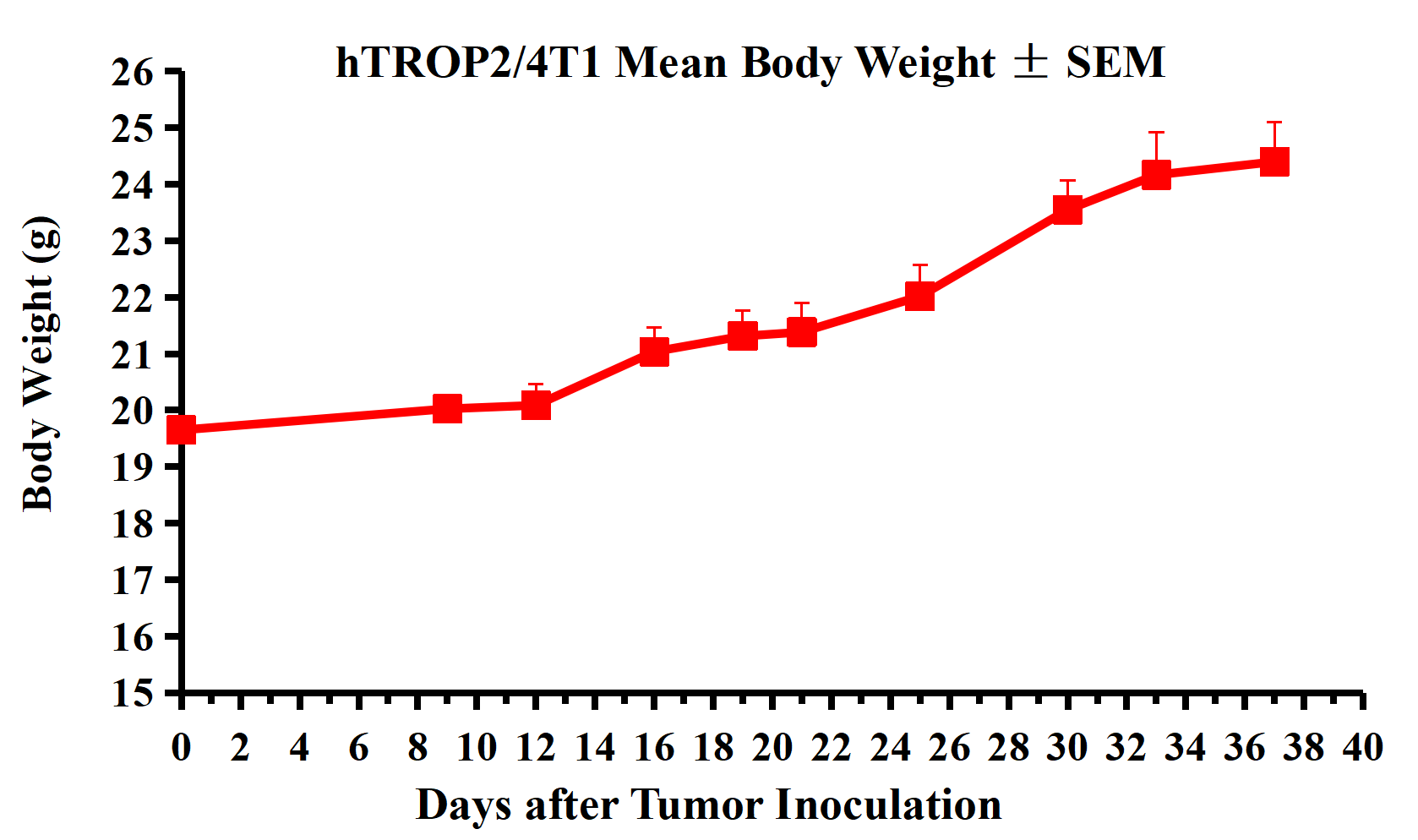 hTROP2/4T1 Mean Body Weight ± SEM.