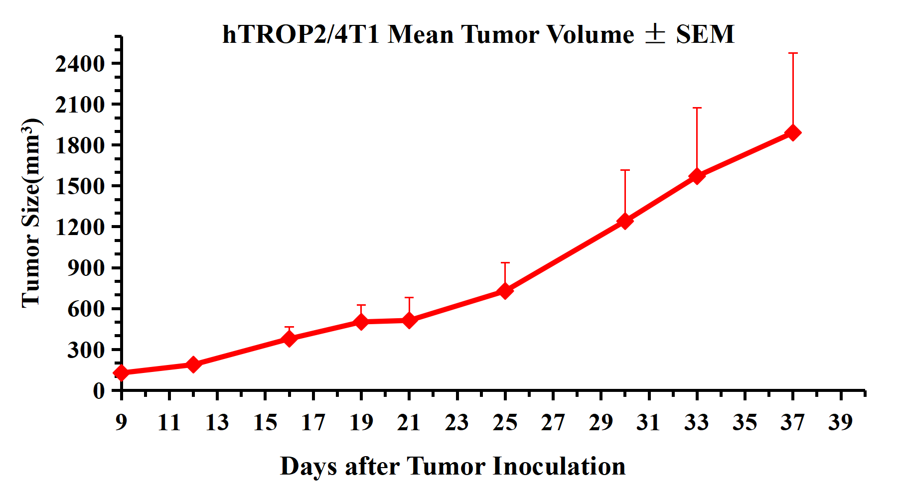 hTROP2/4T1 Mean Tumor Volume ± SEM .