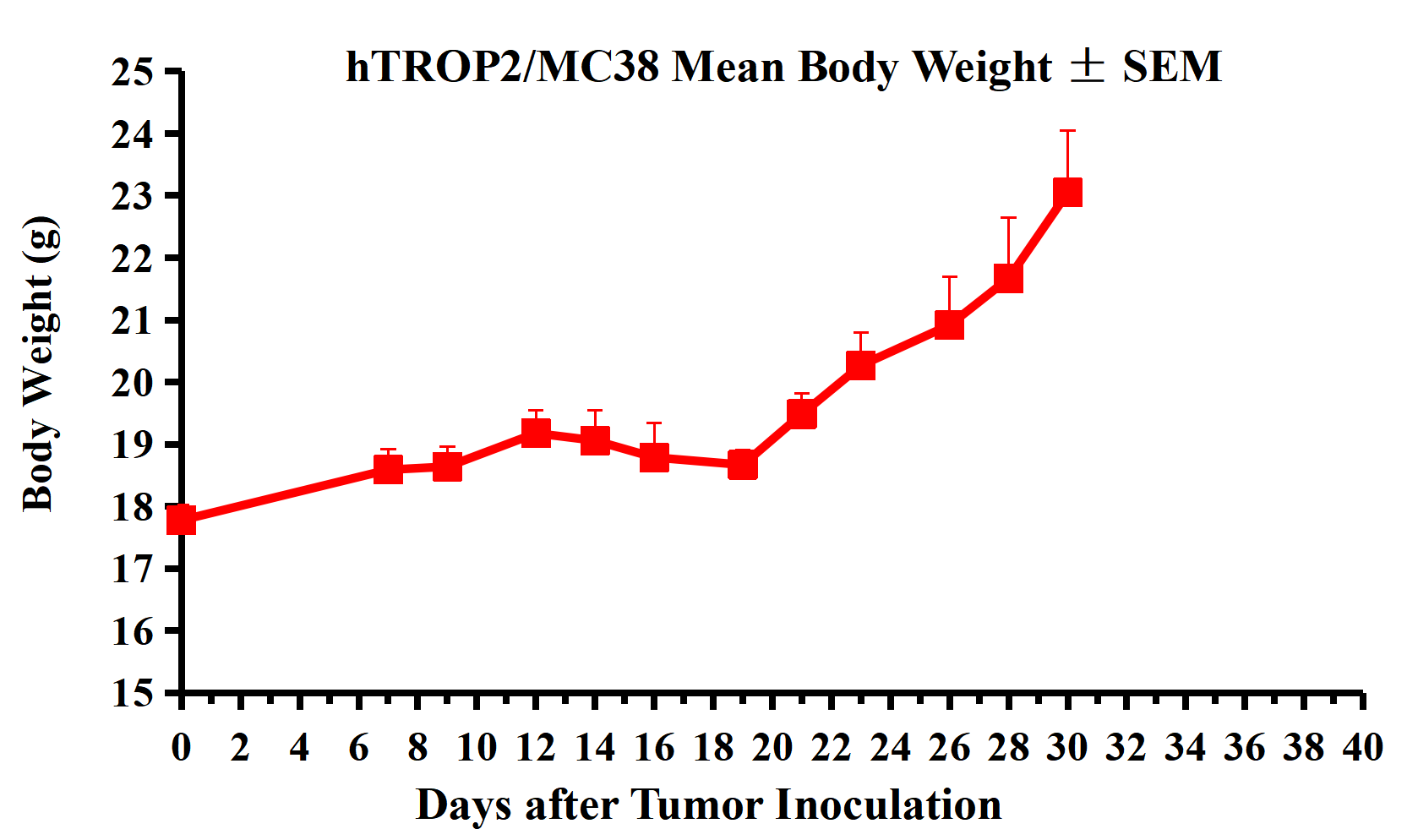 hTROP2/MC38 Mean Body Weight ± SEM.