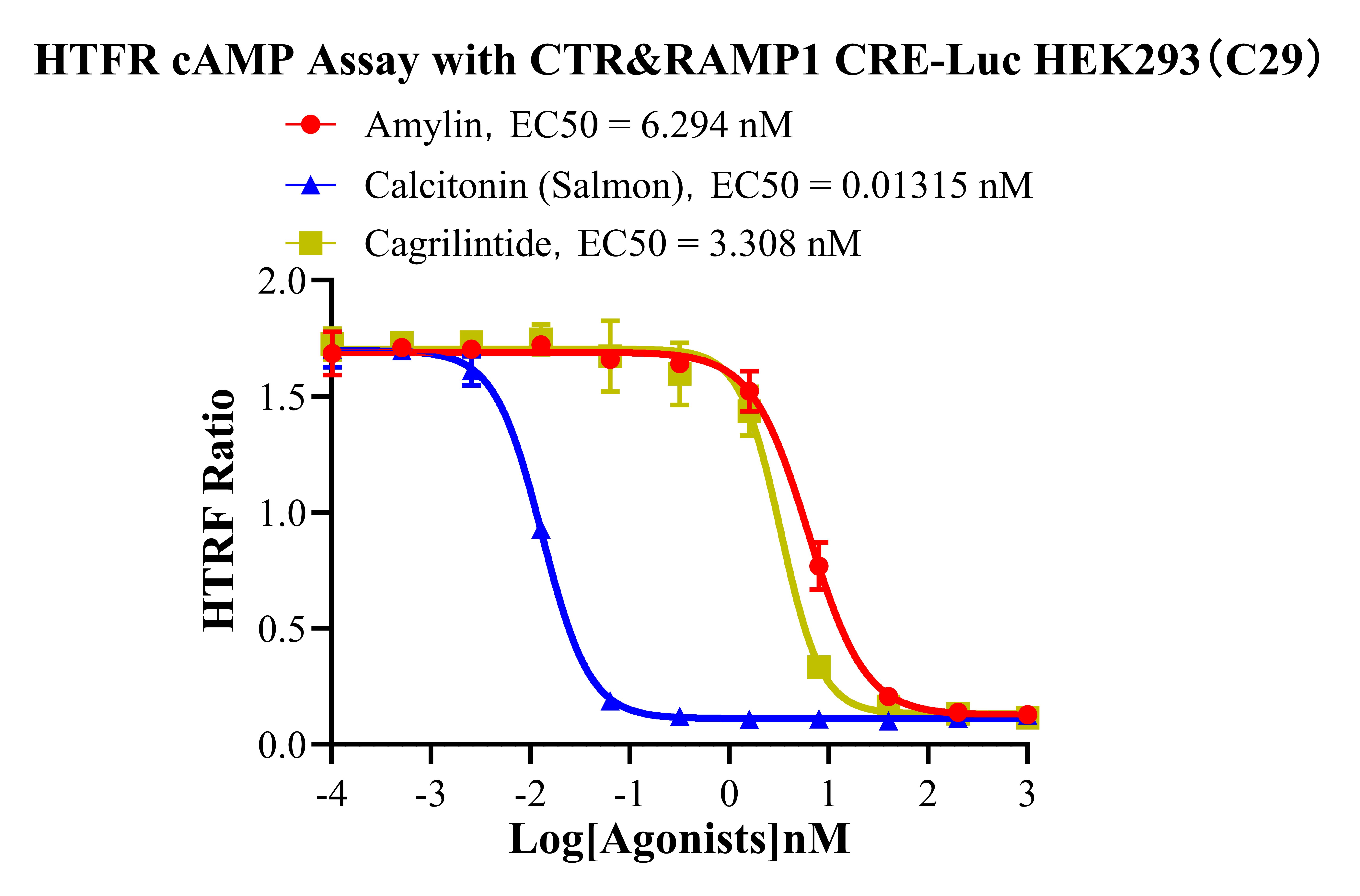 Figure 5. HTRF cAMP Assay with CTR&RAMP1 CRE-Luc HEK293 (C29).