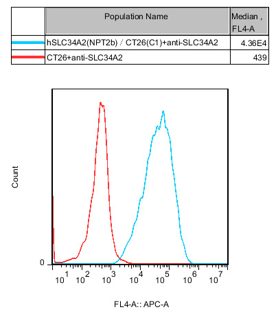 IV. Representative Data![]() Figure 1. Recombinant hSLC34A2(NPT2b)/CT26 stably expressing hSLC34A2(NPT2b). |