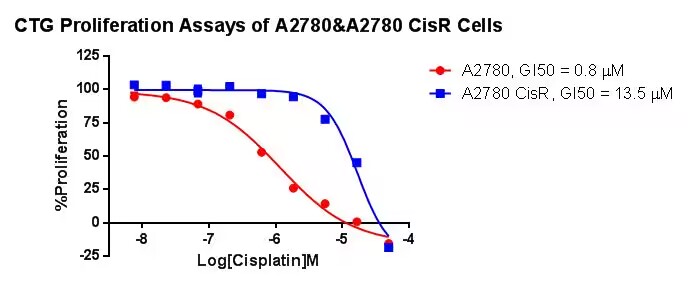 Figure 1. CTG Proliferation Assays of A2780&A2780 CisR Cells. |