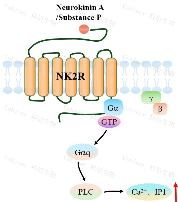 NK2R HEK293 細(xì)胞藥靶模型很好的模擬了體內(nèi) NK2R 的信號(hào)轉(zhuǎn)導(dǎo)過(guò)程,原理見(jiàn)下圖所示。