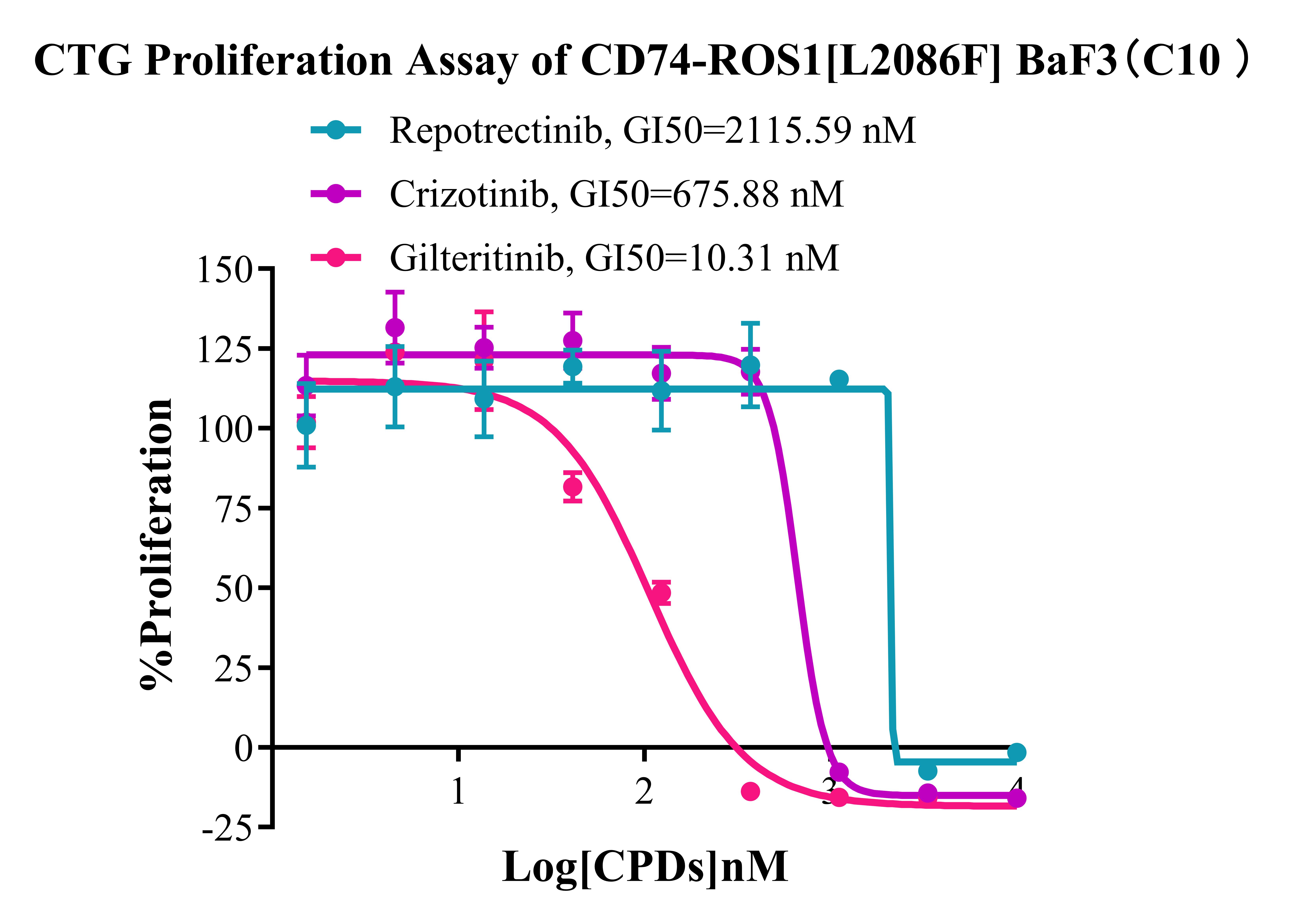Figure 4. CTG Proliferation Assay of CD74-ROS1 [L2086F] BaF3( C10).