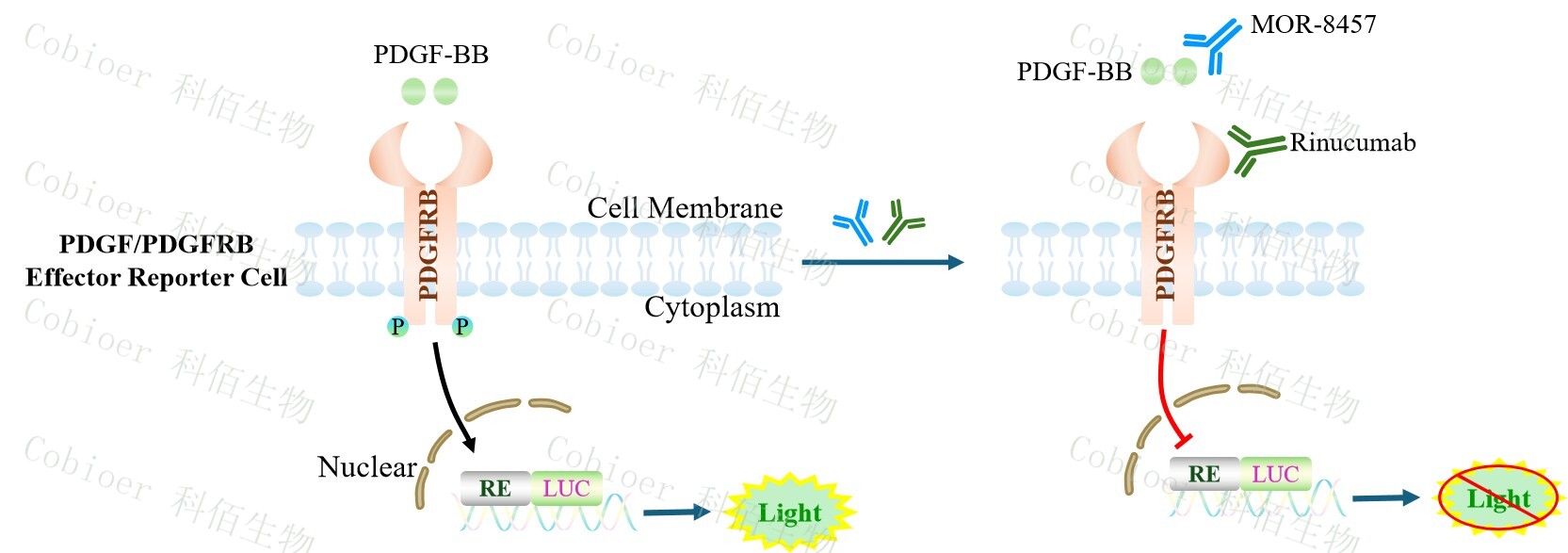 Figure 1. PDGF/PDGFRB Effector Reporter Cell 細(xì)胞模型原理圖