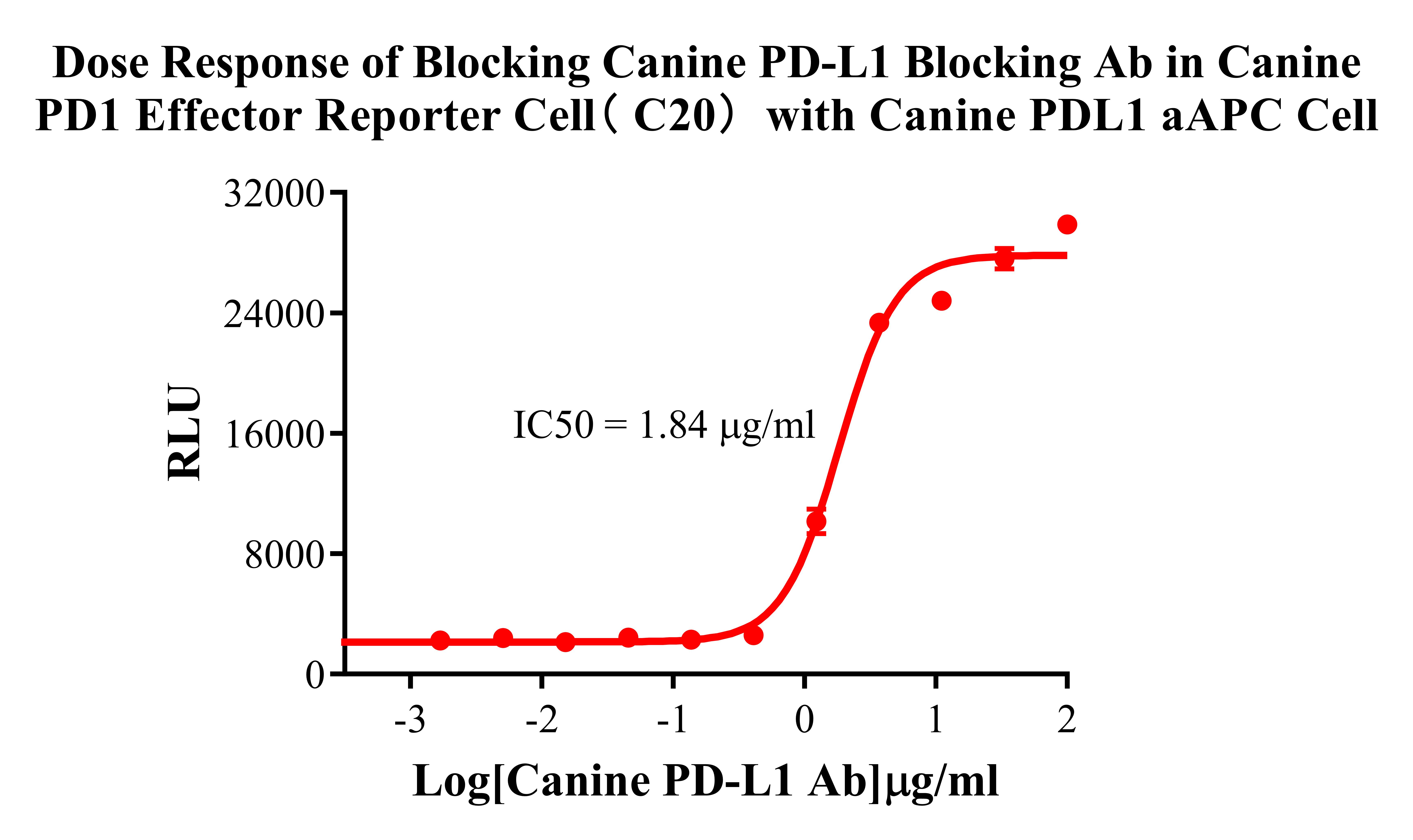 Figure 3. Dose Response of Blocking Canine PD-L1 Blocking Ab in Canine PD1 Effector Reporter Cell( C20) with Canine PDLl  aAPC Cell.
