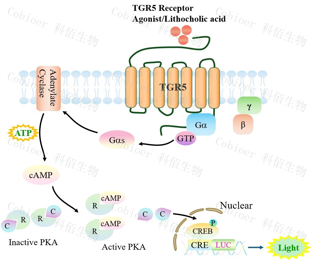 Figure 1. GPBAR1(TGR5) CRE-Luc HEK293 細(xì)胞模型原理圖
