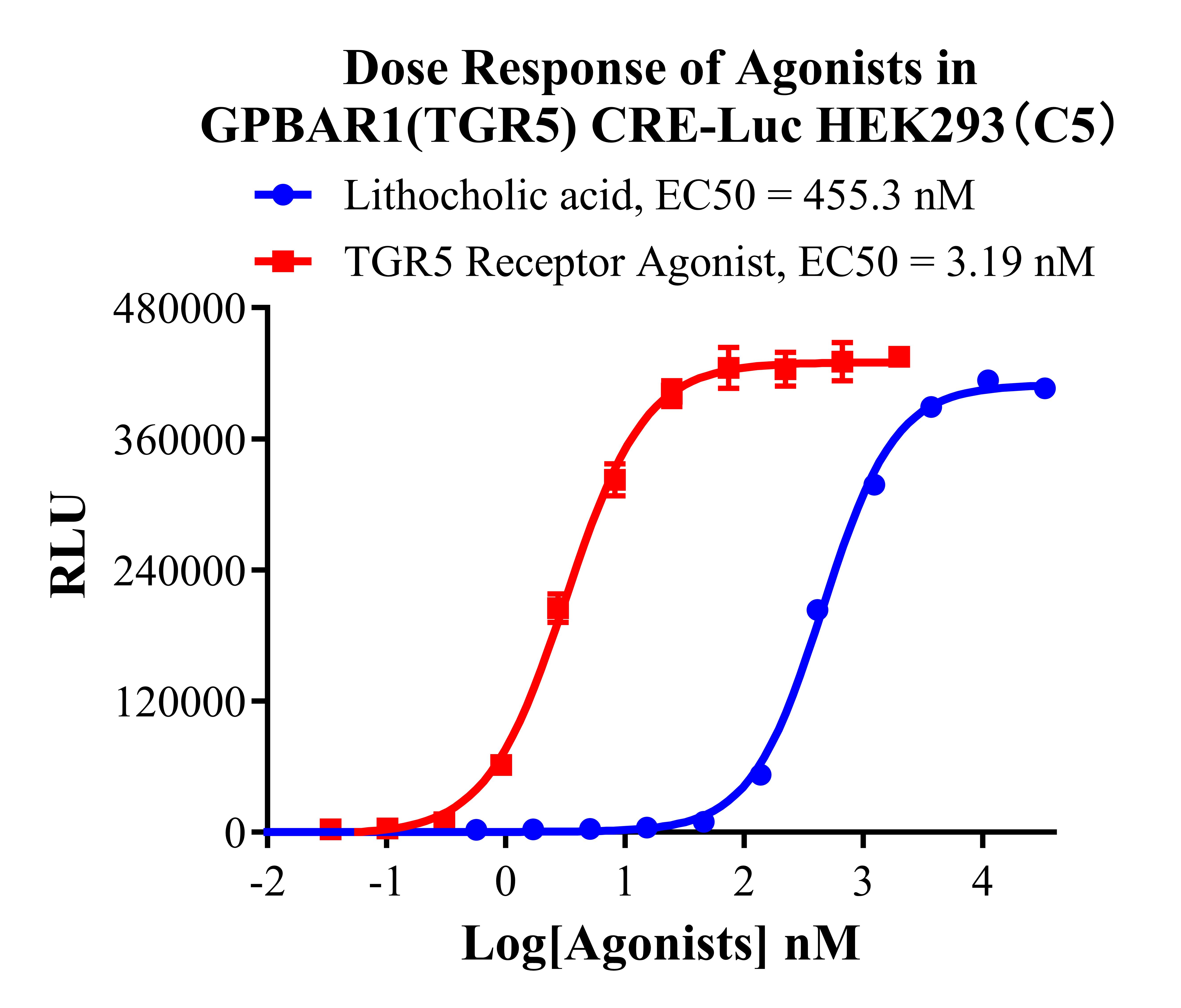 Figure 2. Dose Response of Agonists in GPBAR1(TGR5) CRE-Luc HEK293(C5).