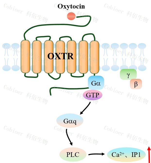 OXTR HEK293 細(xì)胞藥靶模型很好的模擬了體內(nèi) OXTR 的信號(hào)轉(zhuǎn)導(dǎo)過(guò)程,原理見圖下所示。
