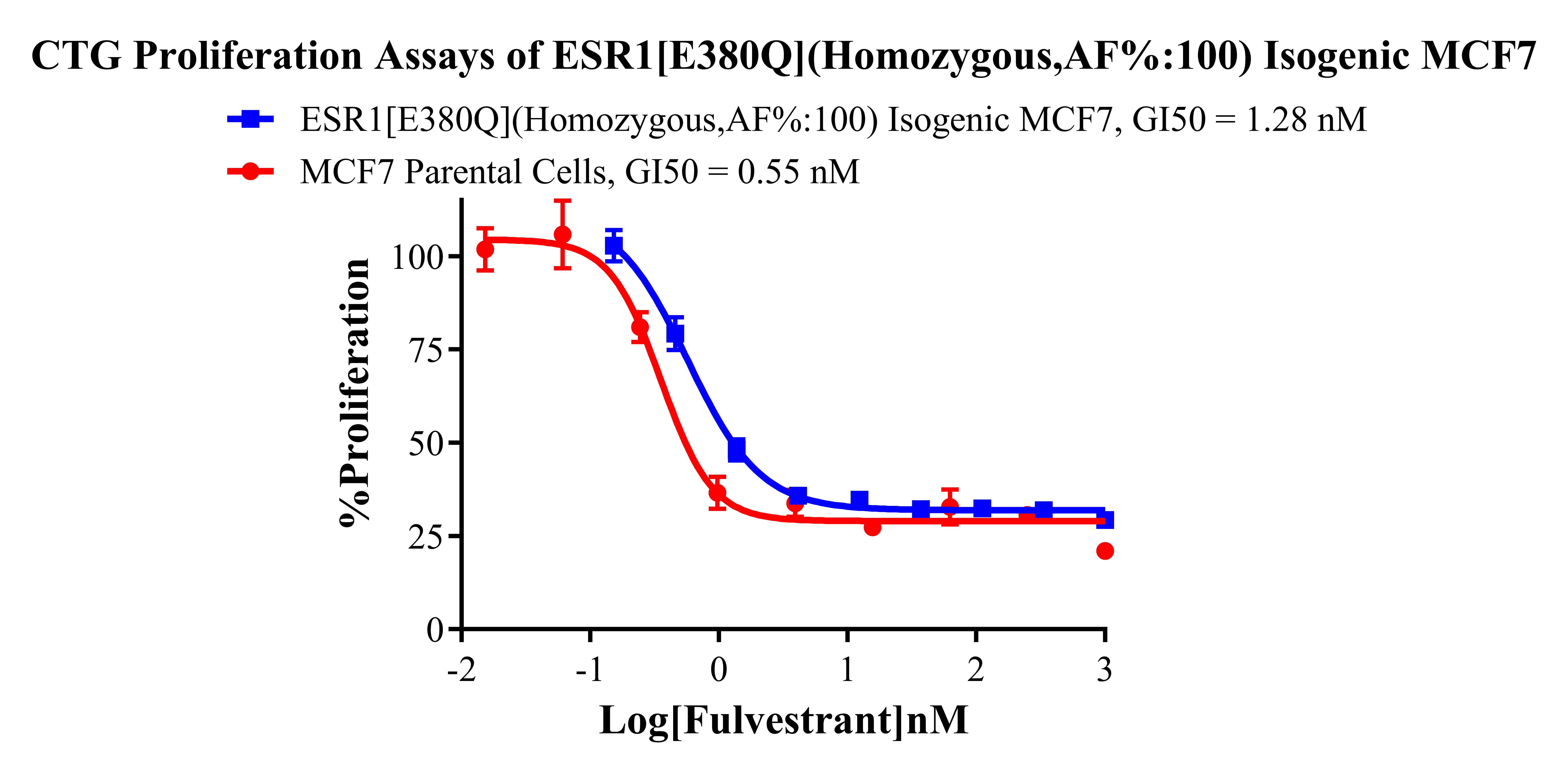 Figure 2. CTG Proliferation Assays of ESR1[E380Q](Homozygous,AF%:100) Isogenie MCF7.