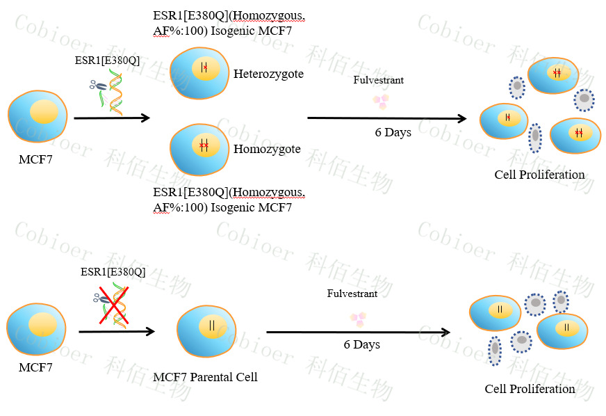 1ESR1[E380Q](Homozygous,AF%:100) Isogenic MCF7 細胞的構(gòu)建原理圖