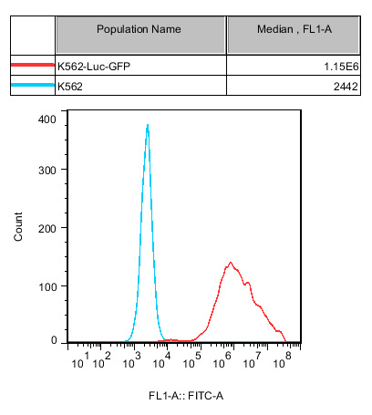 Figure 1.  Recombinant K562-Luc-GFP constitutively expressing GFP.
