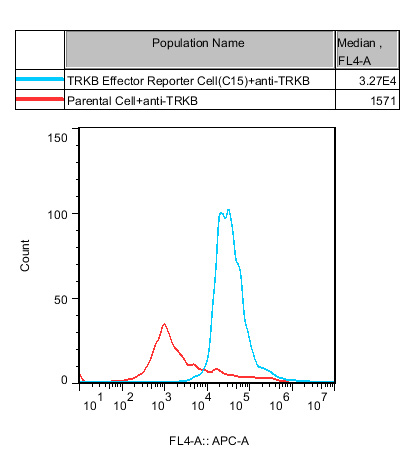 ![]() Figure 2. Recombinant TRKB Effector Reporter Cell stably expressing TRKB. ![]() Figure 3. Dose Response of Recombinant Human NT-4 in TRKB Effector Reporter Cell(C15). ![]() Figure 4. Dose Response of TRKB Agonist Ab in TRKB Effector Reporter Cell(C15). ![]() Figure 5. Inhibition of Human NT-4 induced Reporter Activity by NTRK Inhibitor in TRKB Effector Reporter Cell( C15). |