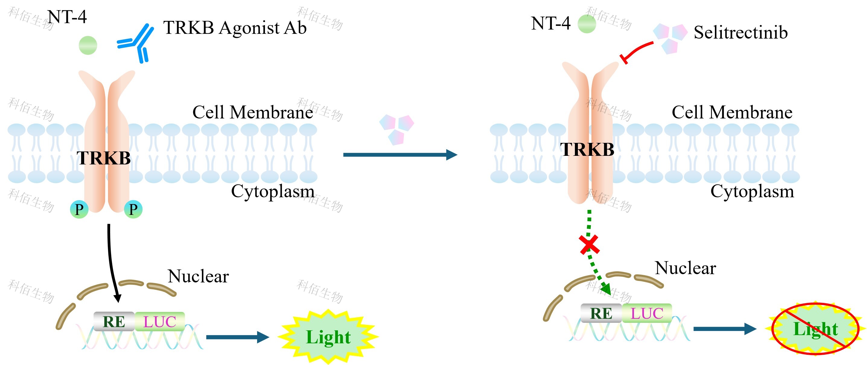 TRKB Effector Reporter Cell 報告基因藥靶模型很好的模擬了體內(nèi) TRKB 的信號轉(zhuǎn)導(dǎo)過程,原理見下圖所示。![]() Figure 1. TRKB Effector Reporter Cell 模型原理圖 |