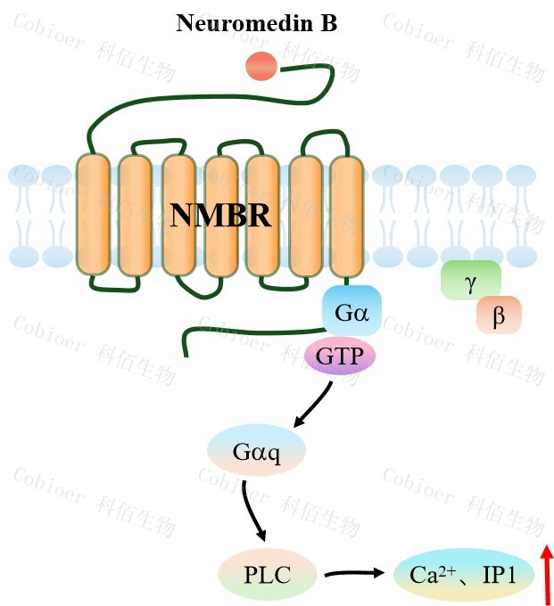 神經(jīng)介素 B 受體(NMBR)是一種廣泛分布于中樞神經(jīng)系統(tǒng)(如調(diào)控焦慮與攝食的下 丘腦、杏仁核)、外周組織(如肺、胃腸平滑?。┘岸喾N腫瘤(包括小細(xì)胞肺癌、膠質(zhì)瘤) 中的 G 蛋白偶聯(lián)受體(GPCR),其特異性結(jié)合配體神經(jīng)介素 B(NMB)或蛙皮素后,主 要激活 Gαq/11-PLCβ 信號(hào)級(jí)聯(lián),觸發(fā) IP3 介導(dǎo)的 Ga 2+釋放與 DAG-PKC 驅(qū)動(dòng)的 ERK 磷酸化, 進(jìn)而調(diào)控細(xì)胞增殖、炎癥因子釋放(如 TNF-α/IL-6)及平滑肌收縮;該受體在生理層面參 與攝食抑制(下丘腦 POMC 神經(jīng)元激活)與痛覺調(diào)節(jié)(增強(qiáng)阿片鎮(zhèn)痛),但病理狀態(tài)下通 過促進(jìn)腫瘤增殖(如肺癌自分泌環(huán)激活 PI3K/AKT)、血管新生(膠質(zhì)瘤 VEGF 分泌)和 免疫微環(huán)境重塑(募集腫瘤相關(guān)巨噬細(xì)胞)驅(qū)動(dòng)疾病進(jìn)展,同時(shí)介導(dǎo)哮喘的氣道高反應(yīng)性 與腸易激綜合征的胃腸動(dòng)力紊亂,當(dāng)前其治療價(jià)值聚焦于拮抗劑用于抗腫瘤、抗炎(緩解 支氣管痙攣)及激動(dòng)劑治療中樞代謝性疾病(如肥胖),而開發(fā)兼具組織選擇性(外周拮 抗/中樞激動(dòng))與穩(wěn)定性的藥物仍是核心挑戰(zhàn)。