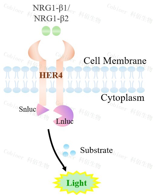 ERBB4(HER4) Dimerization CHO 報(bào)告基因藥靶模型很好的模擬了體內(nèi) ERBB4 的信號(hào)轉(zhuǎn)導(dǎo)過(guò)程,原理見下圖所示。![]() Figure 1. ERBB4(HER4) Dimerization CHO 細(xì)胞模型原理圖 |
