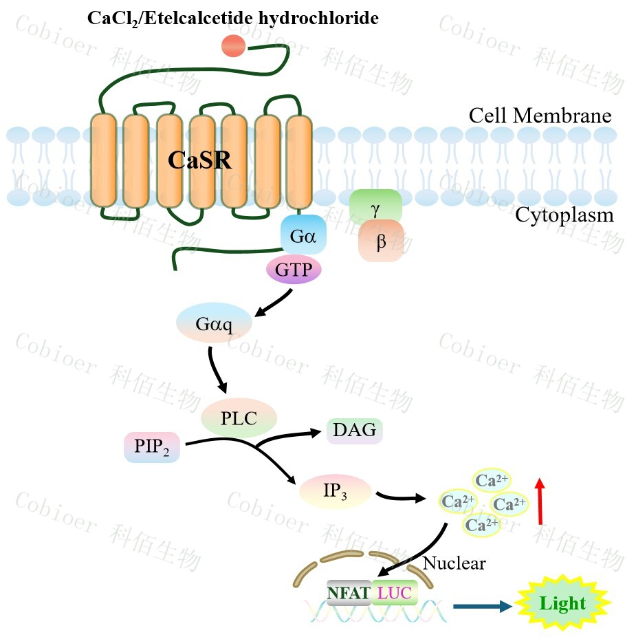 Figure 1. CaSR NFAT-Luc HEK293 細胞模型原理圖