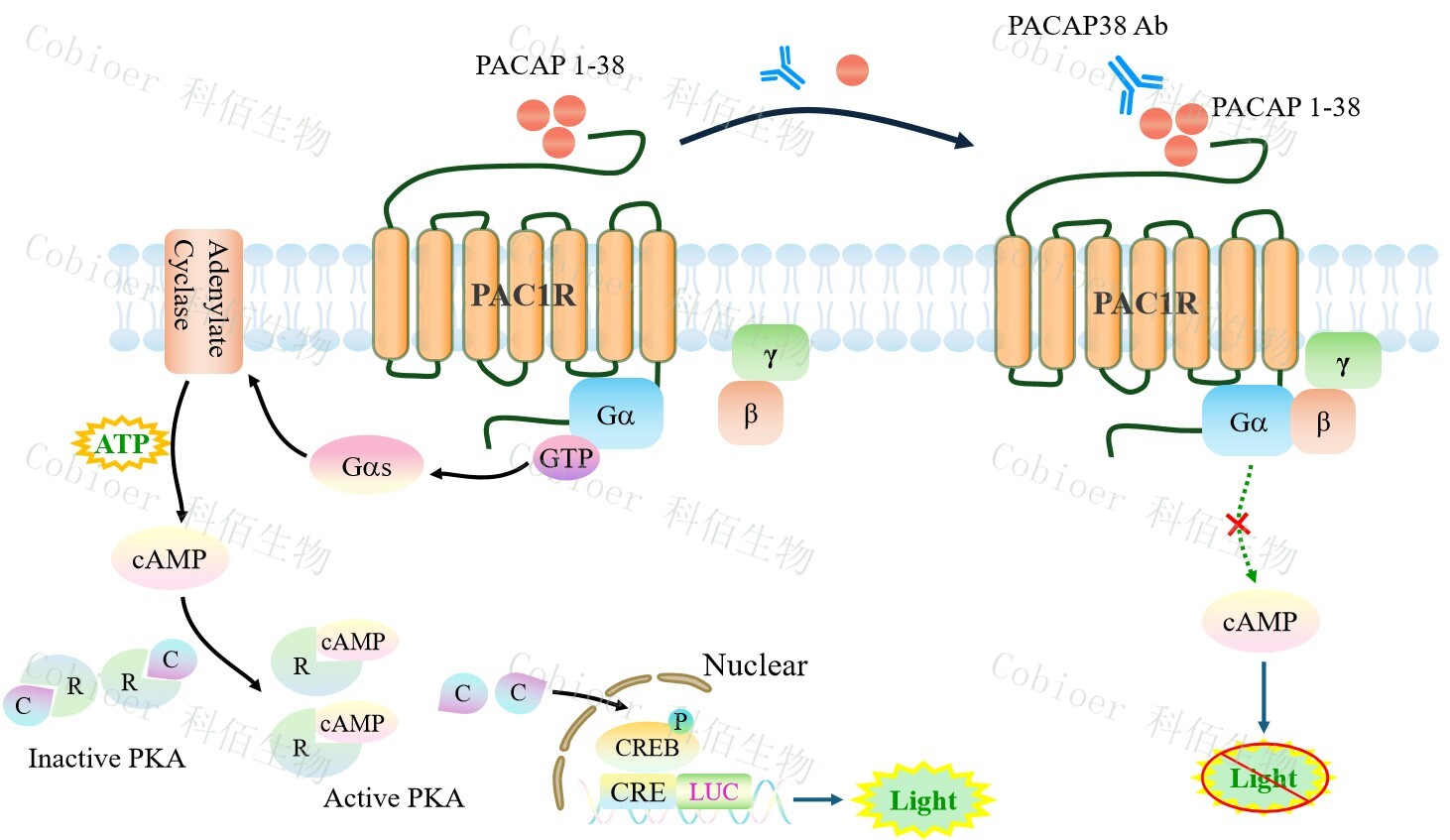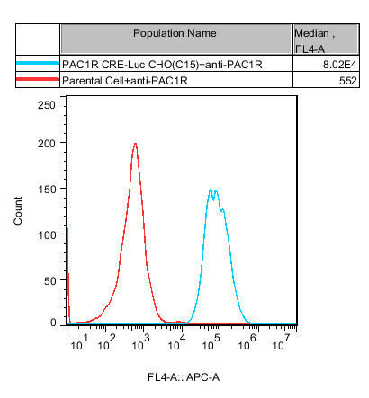 PAC1R CRE-Luc CHO 報告基因藥靶模型很好的模擬了體內(nèi) PAC1R 的信號轉(zhuǎn)導(dǎo)過程, 原理見下圖所示。![]() Figure 1. PAC1R CRE-Luc CHO 細胞模型原理圖 |