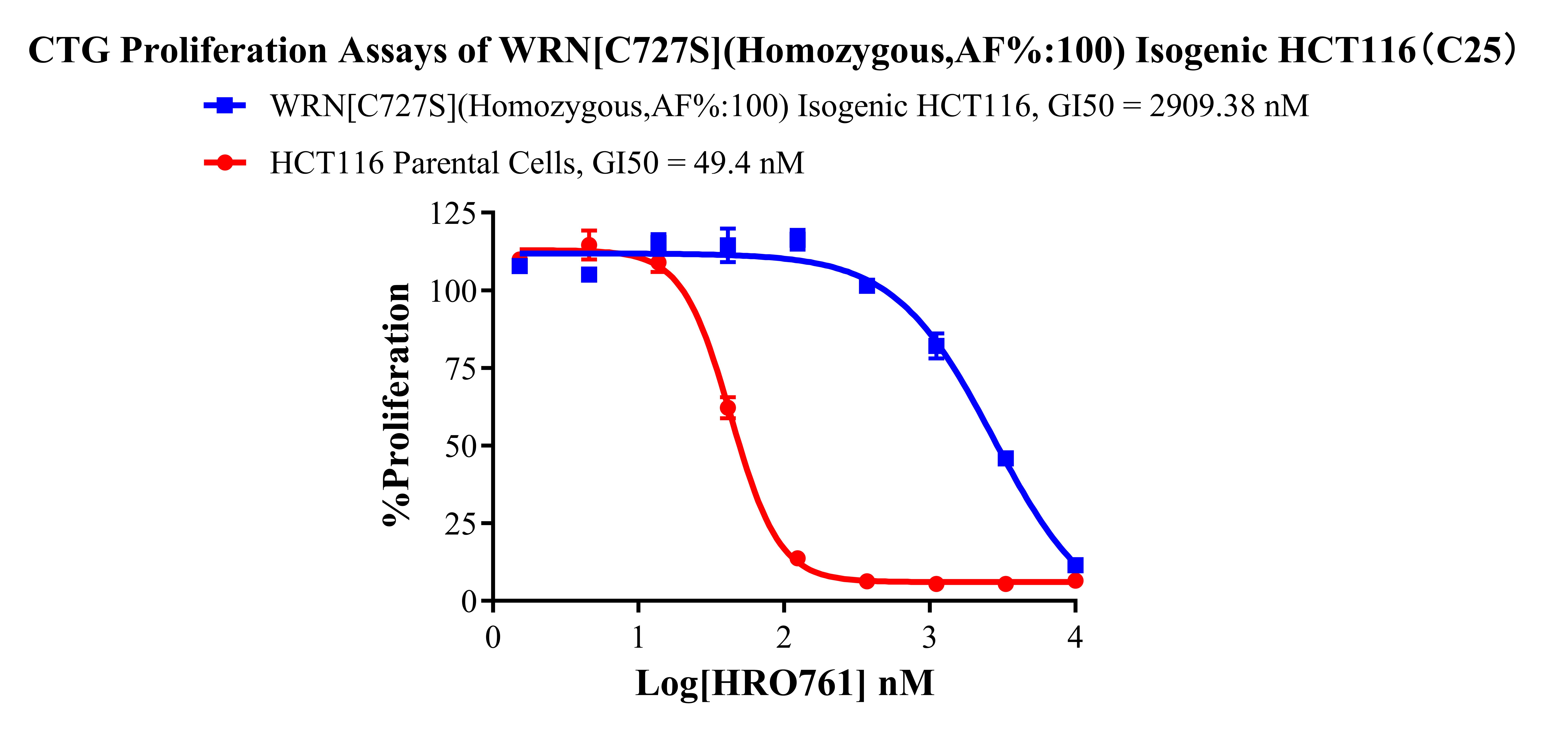 Figure 5. CTG Proliferation Assays of WRN[C727S](Homozygous,AF%:100) Isogenic HCT116(C25).