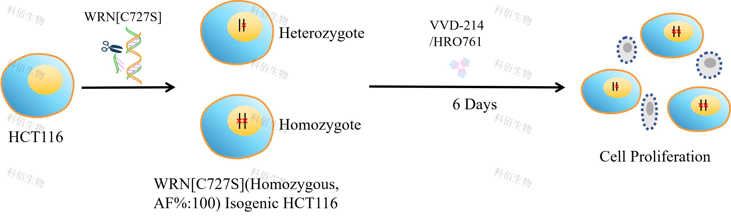 Figure 1. WRN[C727S](Homozygous,AF%:100) Isogenic HCT116 原理示意圖
