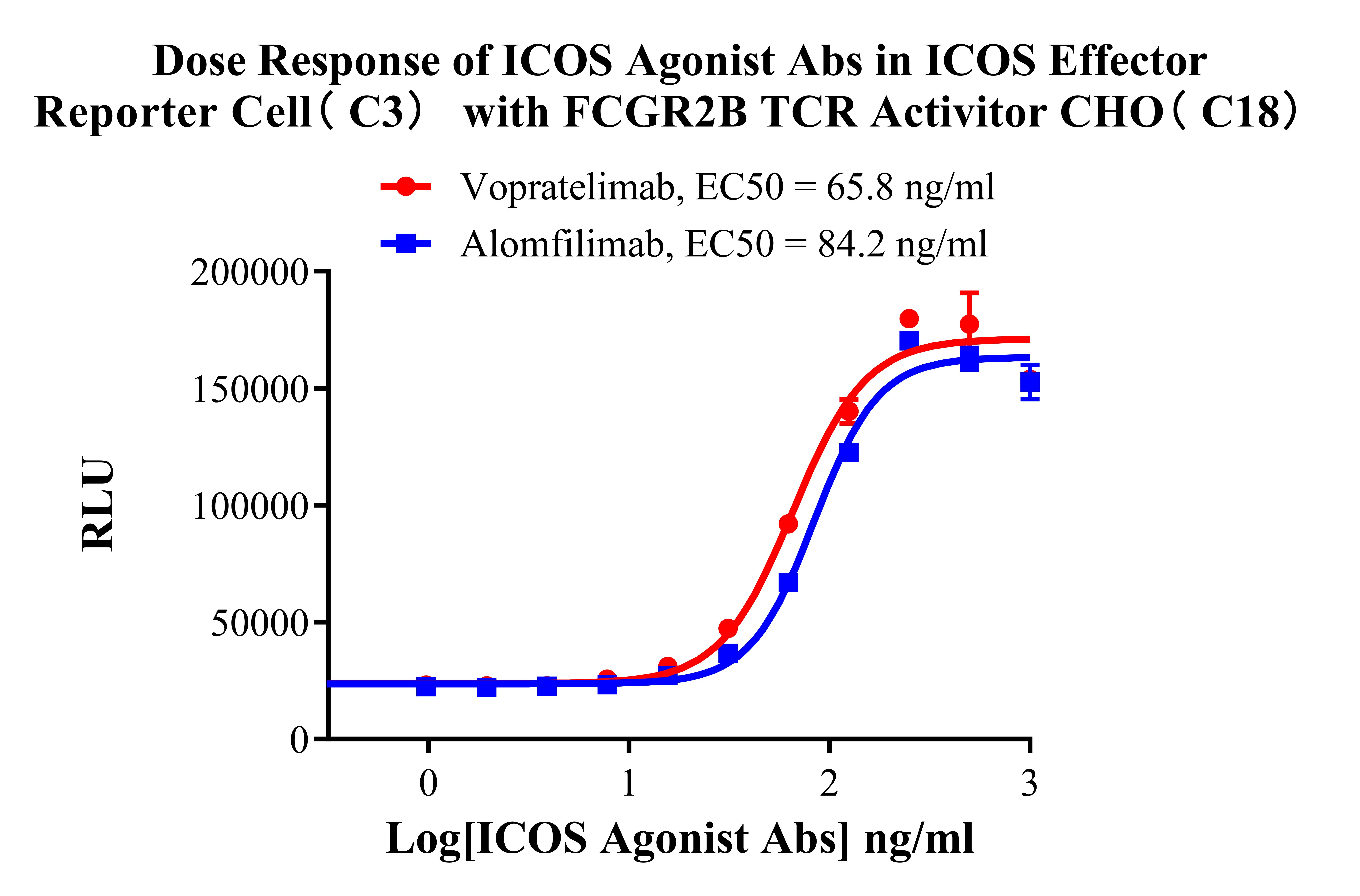 Figure 3. Dose Response of ICOS Agonist Abs in ICOS Effector Reporter Cell(C3) with FCGR2B TCR Activitor CHO(C18).