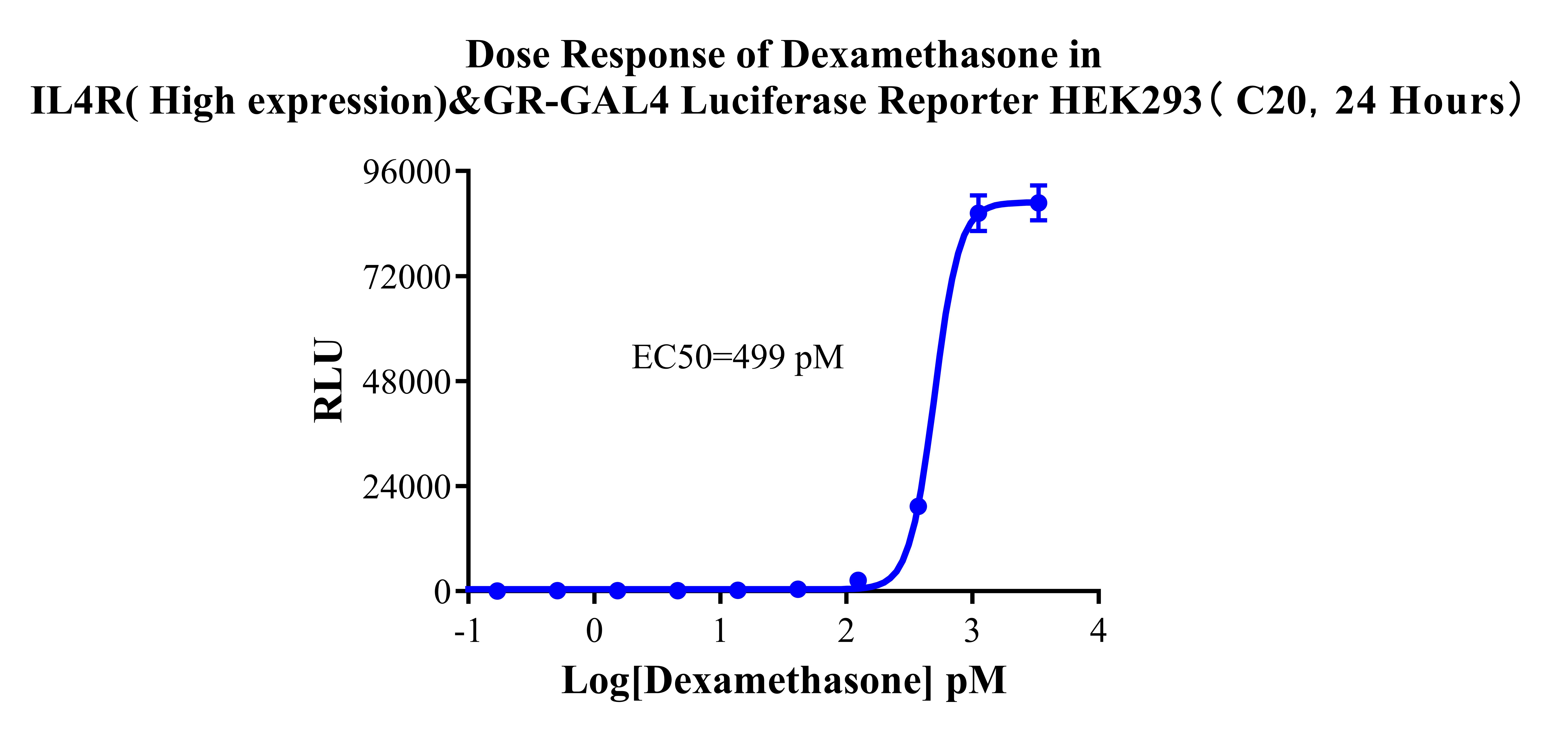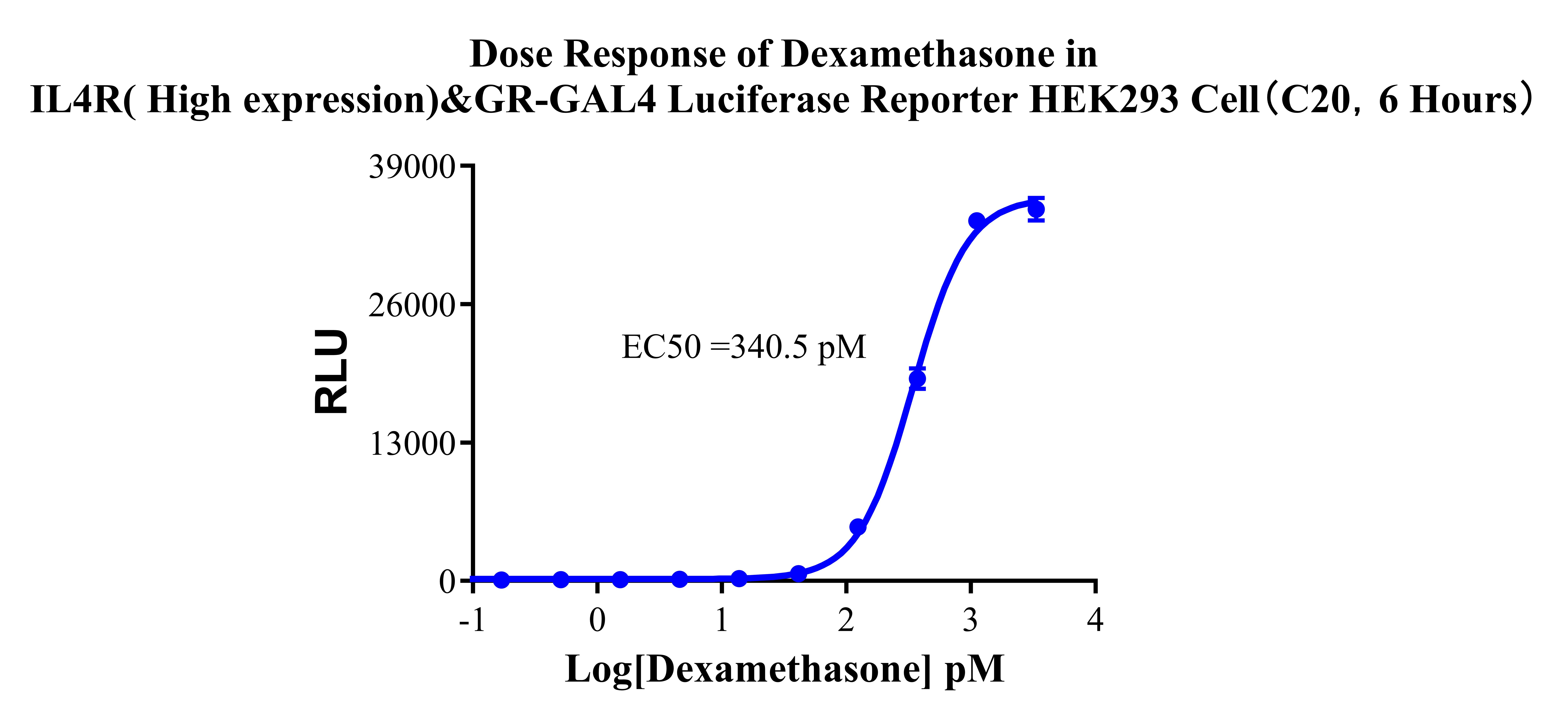 Figure 4. Dose Response of Dexamethasone in IL4R( High expression)&GR-GAL4 Luciferase Reporter HEK293( C20, 24 Hours).