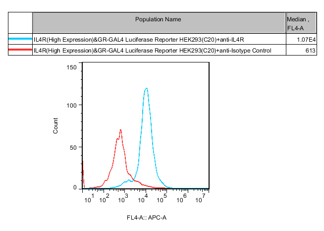 Figure 2. Recombinant IL4R( High expression)&GR-GAL4 Luciferase Reporter HEK293 stably expressing IL4R.